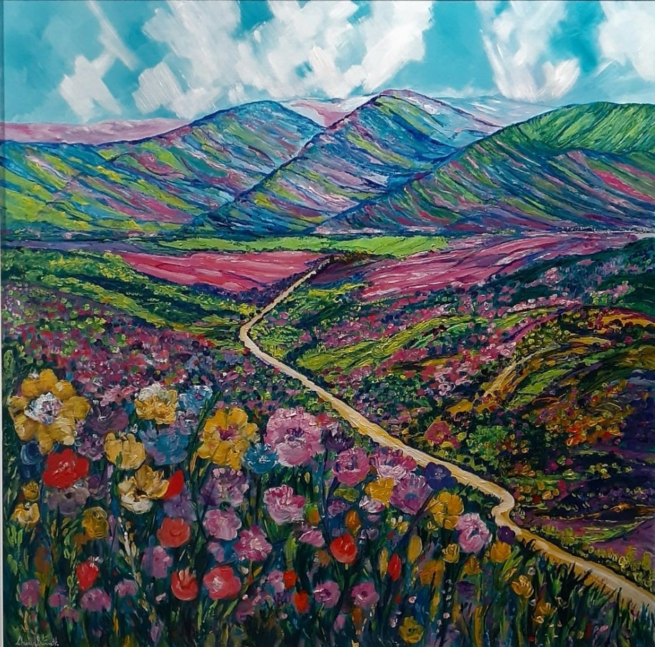 symbolically parallel in our own life. Utilizing mixed media painting and drawing. Michael provides us with a variety of Abstract landscape scenes that create a visual story to illustrate a variety of scenarios played out on the world's stage.