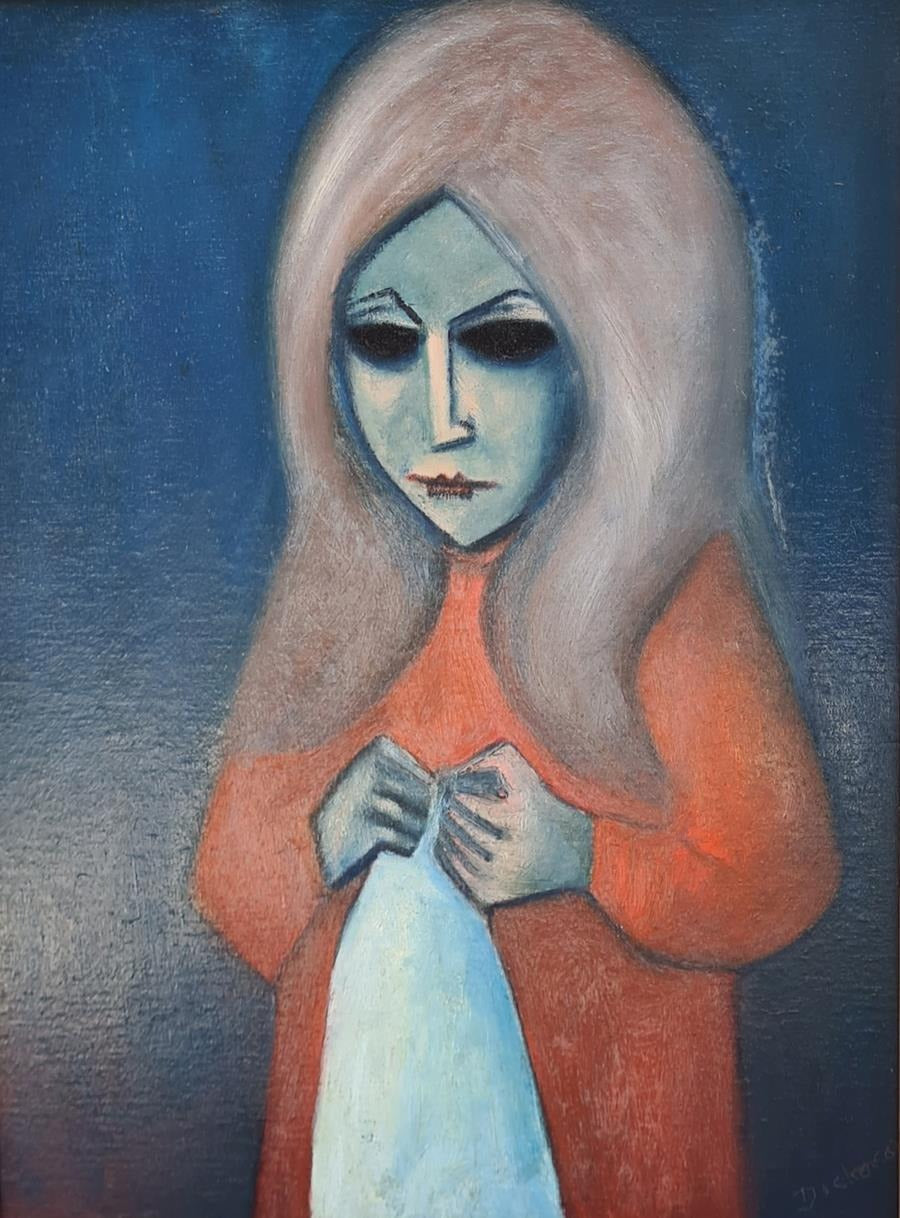 Robert Dickerson | Girl with handkerchief | Oil on canvas on board | 59 x 44 cms | 1970 c