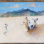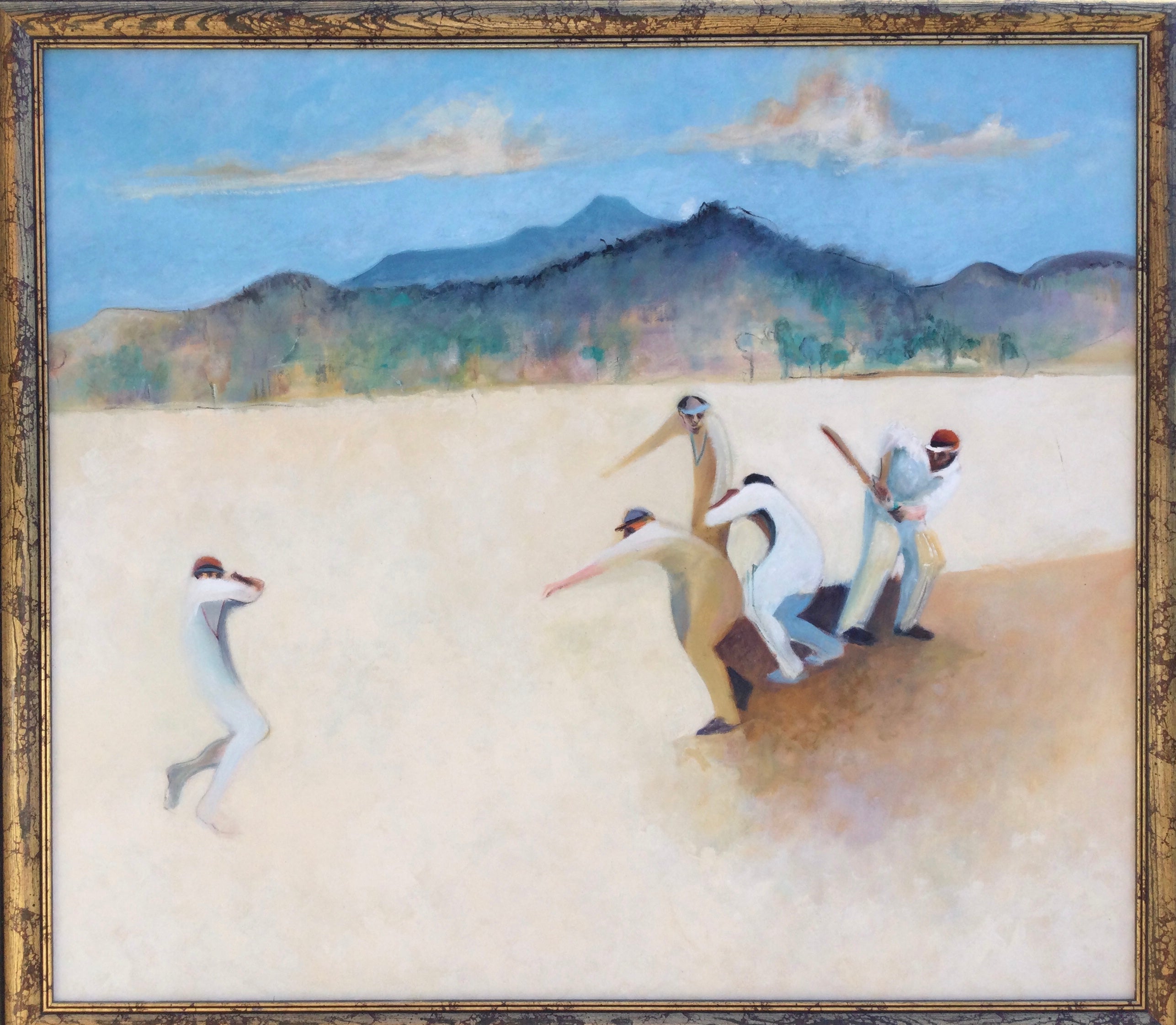 Contrasting his landscapes is Robbie’s work that exposes rural cricket teams, battling it out on parched pitches. The players often appear stylised, but are still convincing, as their painted forms capture the pose and movement of active players and matches.