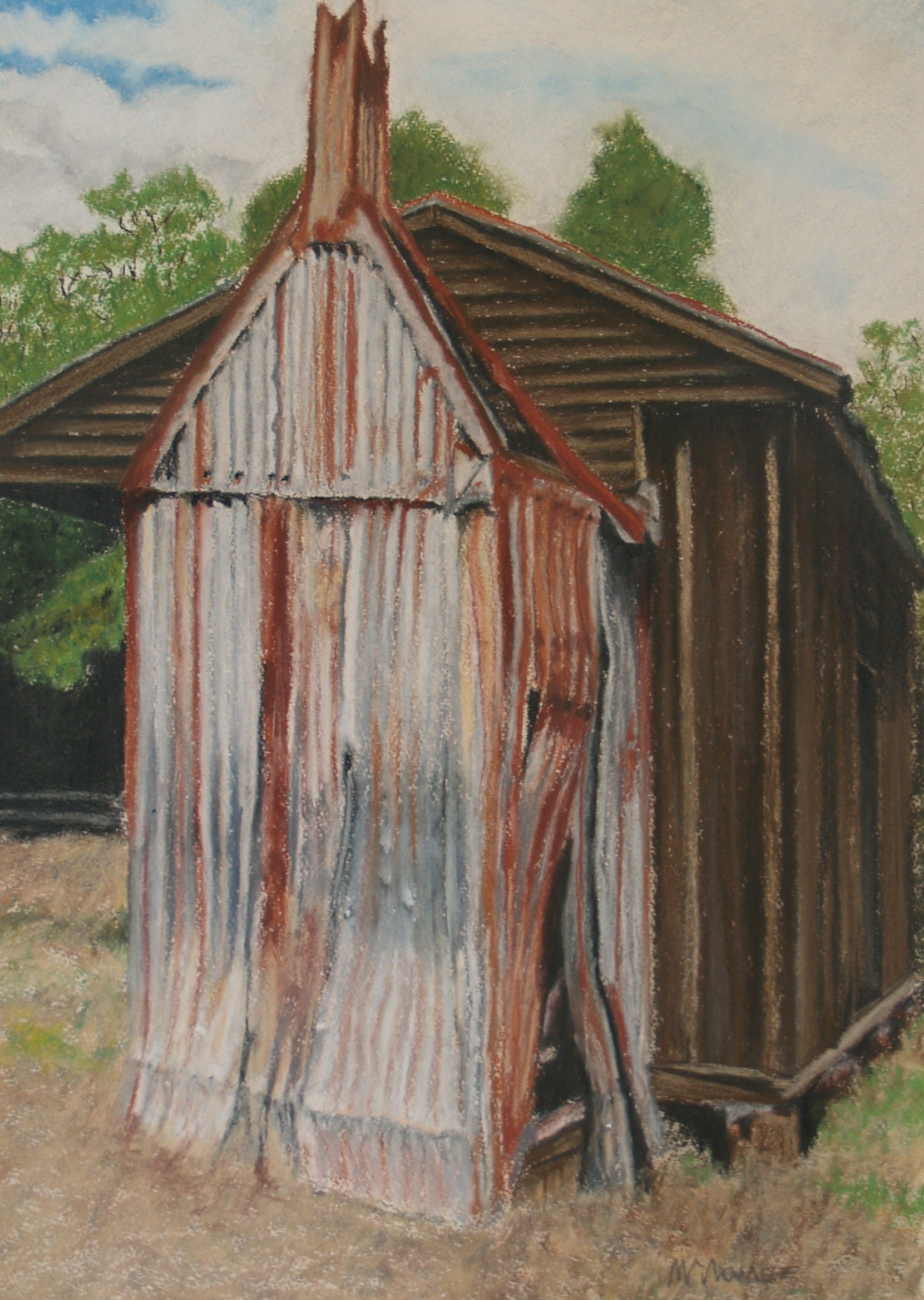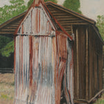 Artist Statement: Just glimpsed after heading along the Cessnock Road out of Maitland, an early rural worker’s hut built closer to the main road than where the main homestead would have been. - Holly NcNamee.