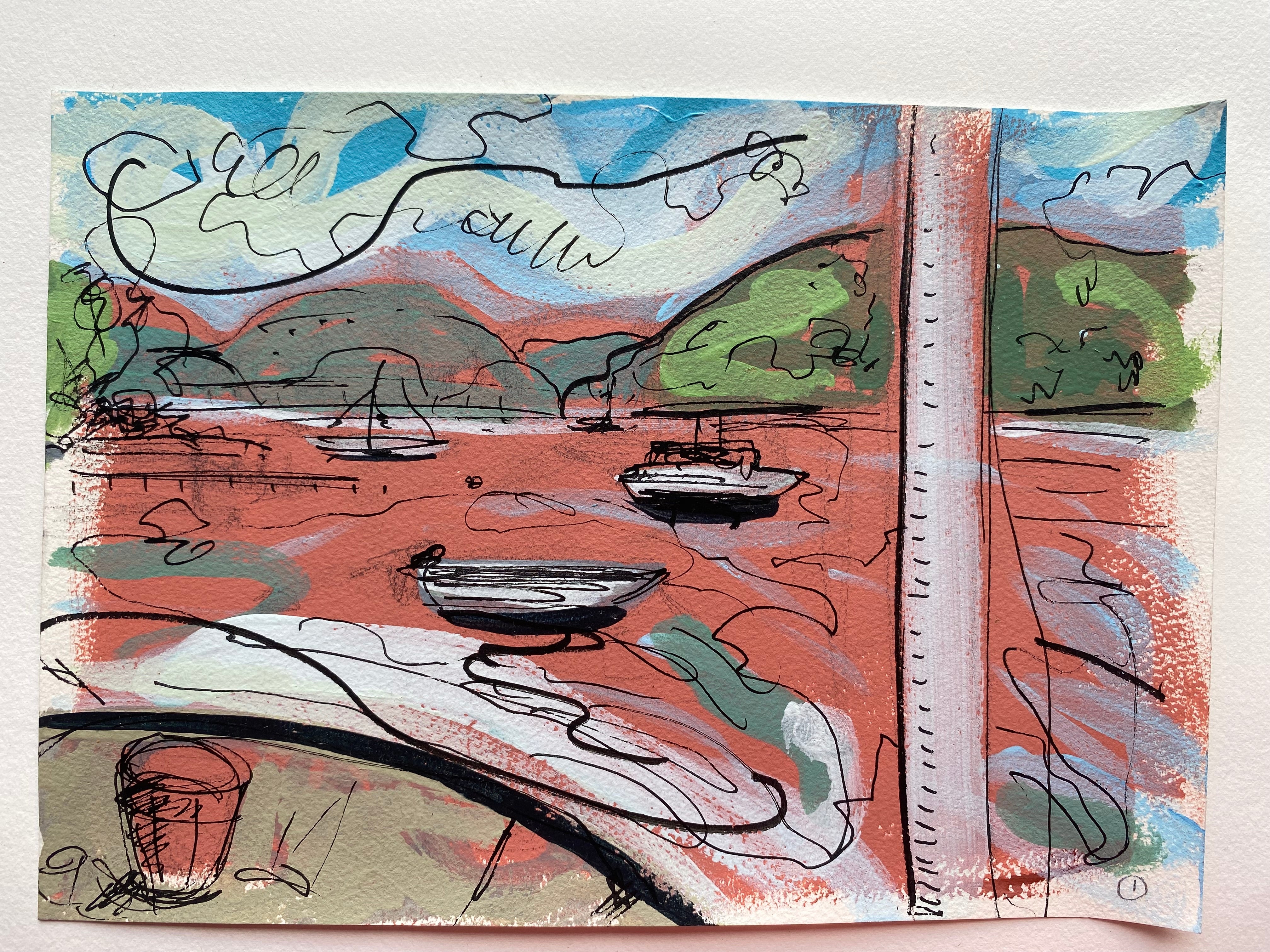 Artist Statement: The view from the café – and former Post Office – on Dangar Island. I lived on the island for a brief period in the early 2000s and often used to row to work.