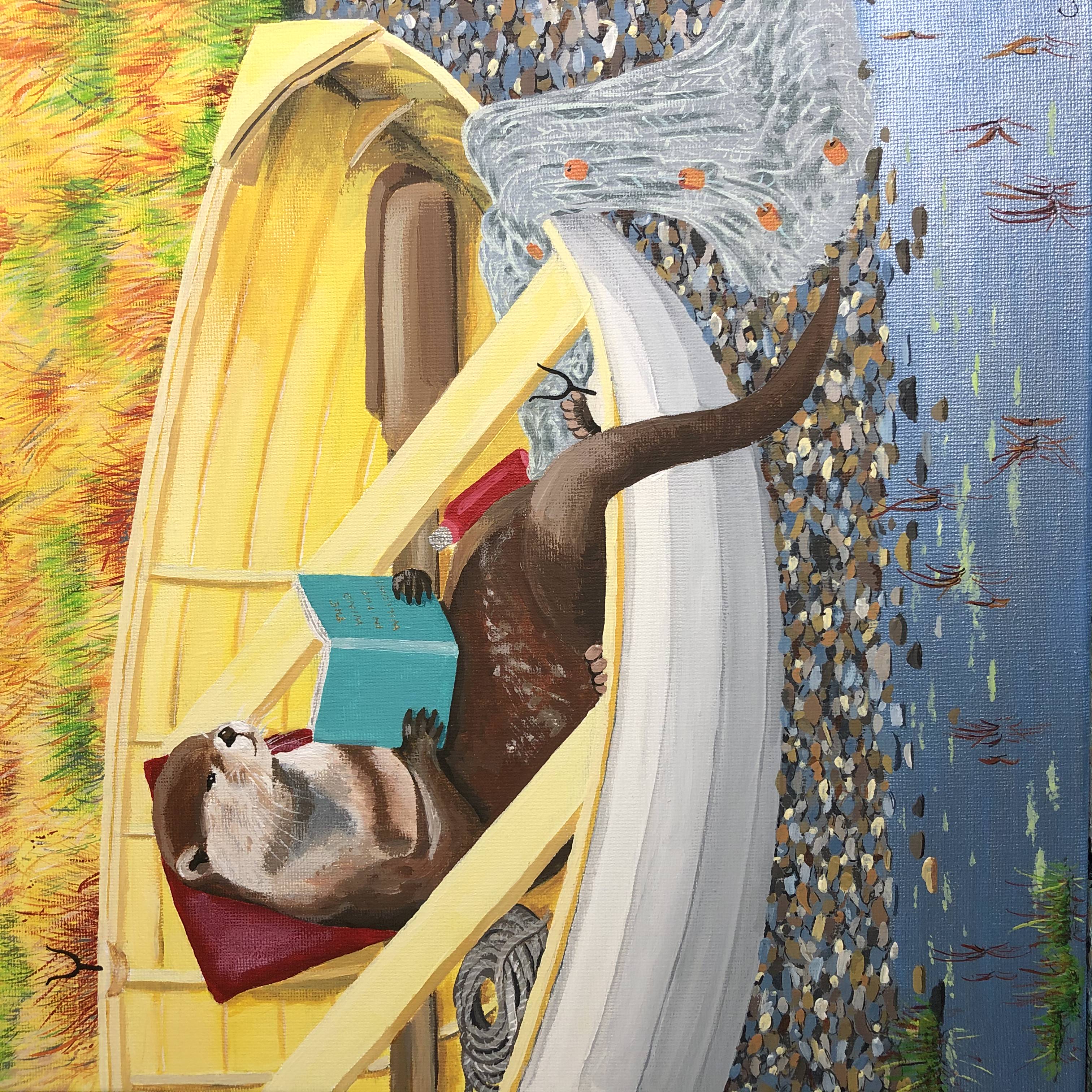 Artist Statement: With a passing nod to 'Wind in the willows', our otter is spending the Autumn afternoon relaxing in his beached dinghy. - Catherine Banney