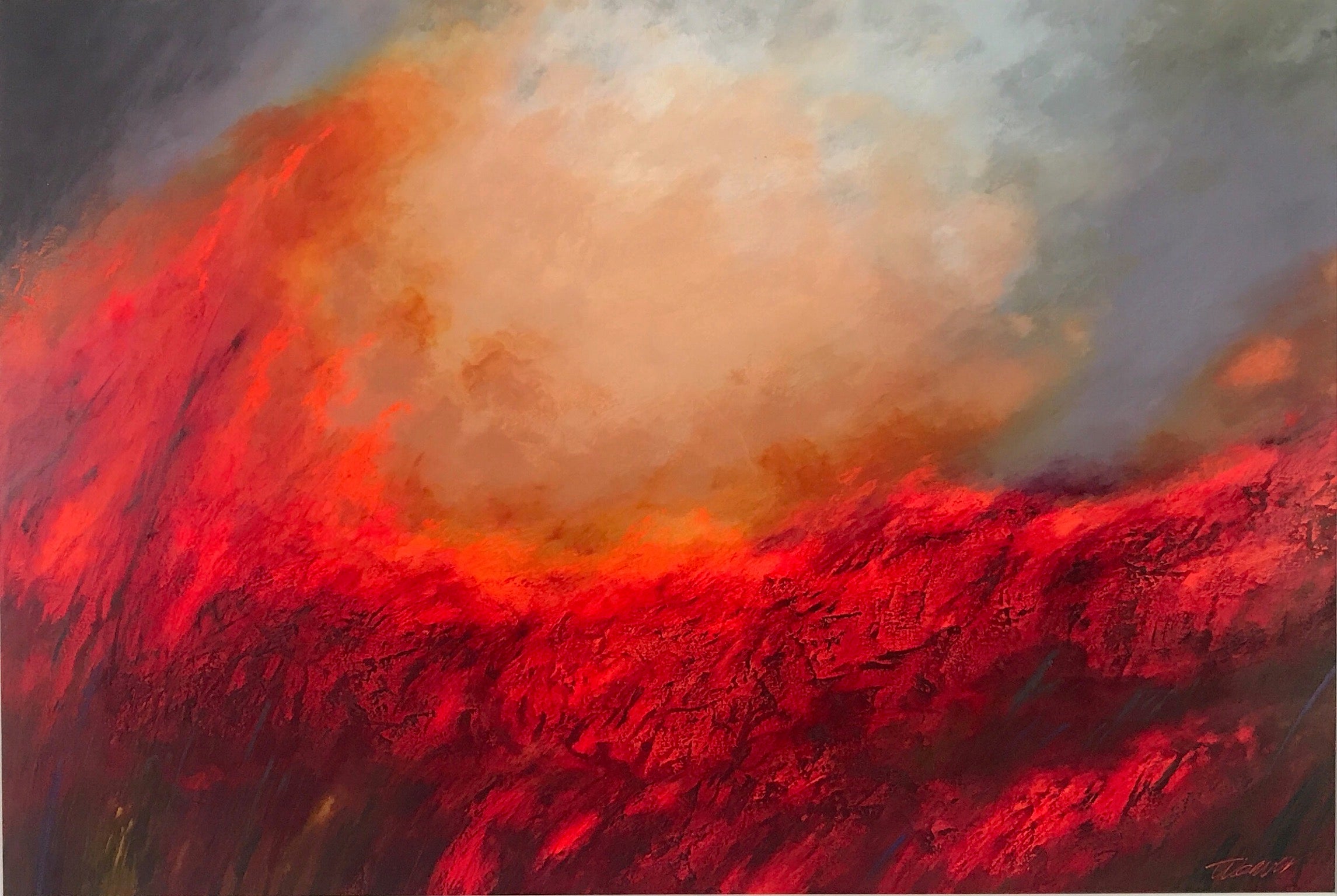 Artist Statement: Envelop features thick smoke and flames encircling the bush, this painting captures the intensity of fire and focuses on the textures of burning debris, the flicker of flames and dense smoke. - Susan Weaver.