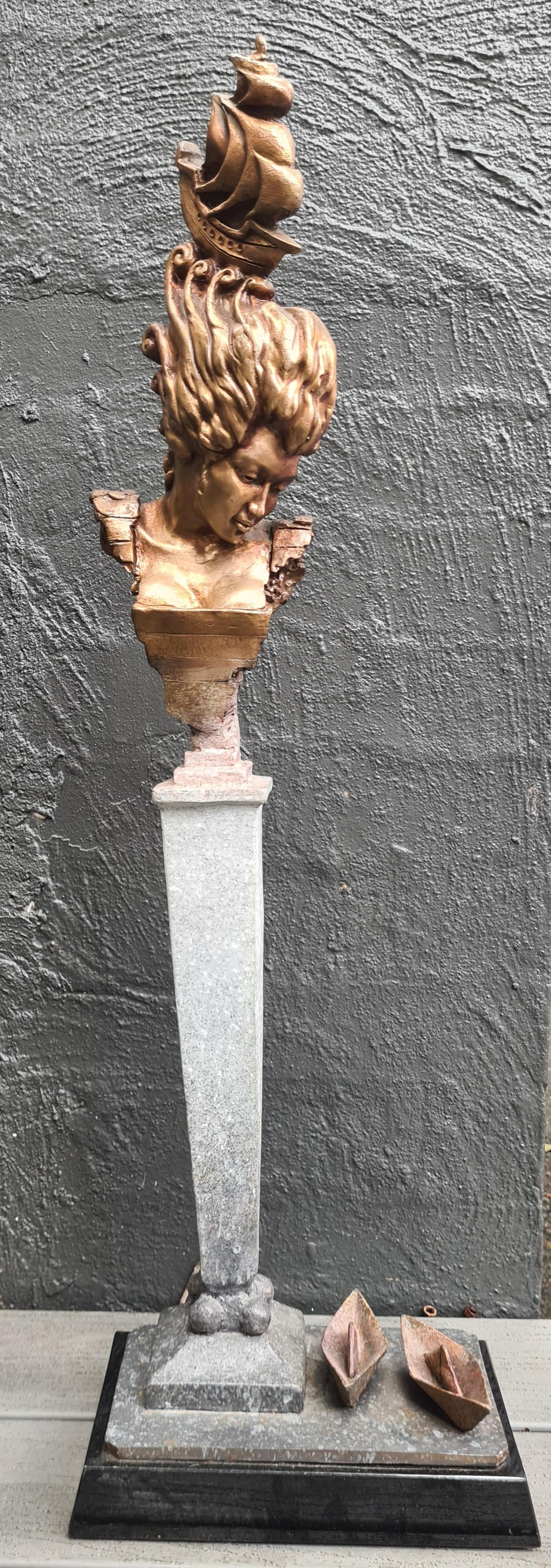 bronzes, some of which were female heads on columns, similar to classical portraits. Flotilla is an extension of this series but she is now conscious of her surroundings. Her nautical design was inspired by contemporary fashion imagery.