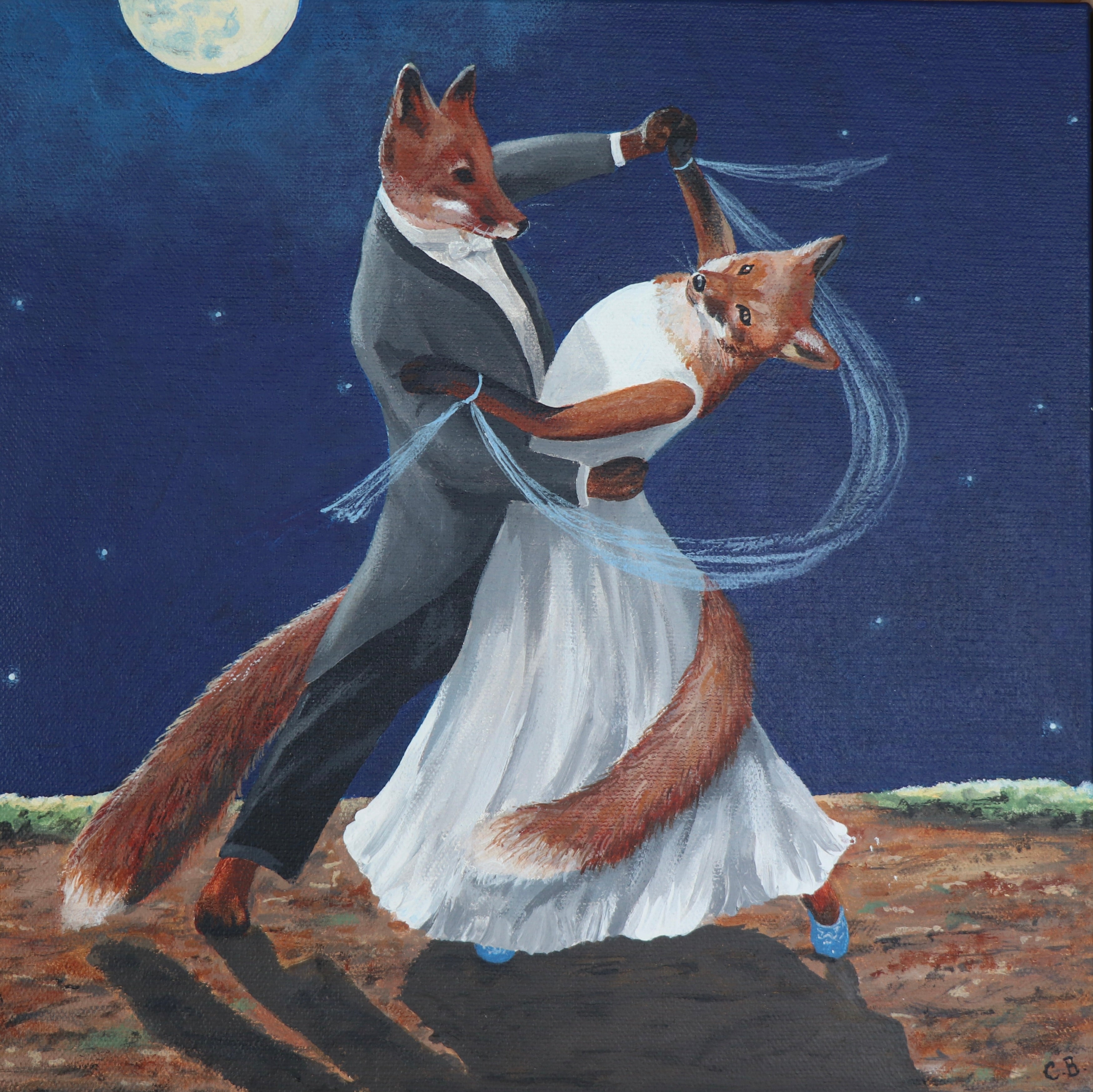 Artist Statement: A pair of foxes sharing an elegant ((eponymous) dance in the moonlight.