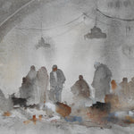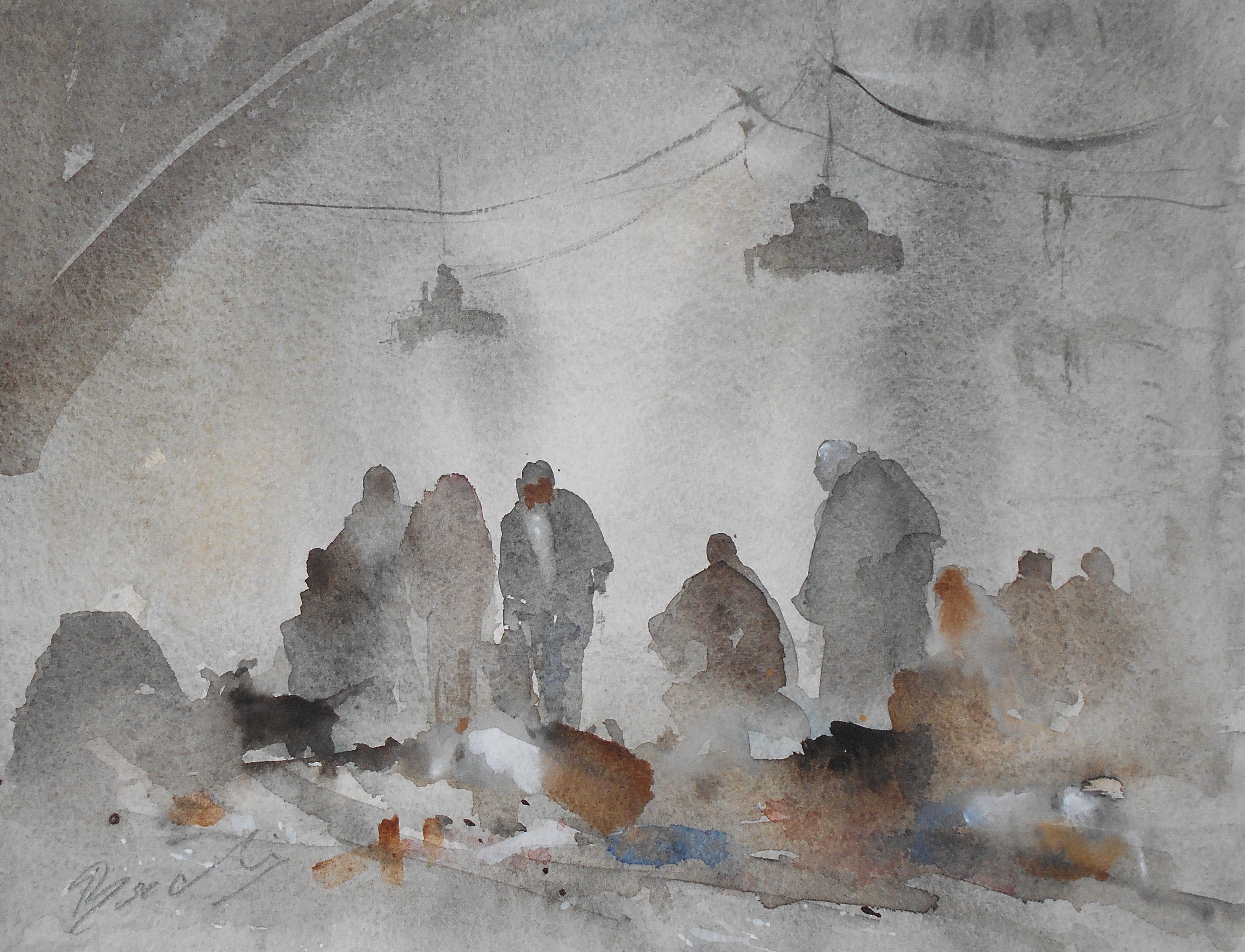 Artist comment: This is from an old drawing of the homeless at Central Station Sydney. Many times I made sketches while waiting for my train to the Blue Mountains Many times It was the same people and somehow quite happy to be there The dog was well looked after and the small collection tin said 'God Bless' - David Beschi