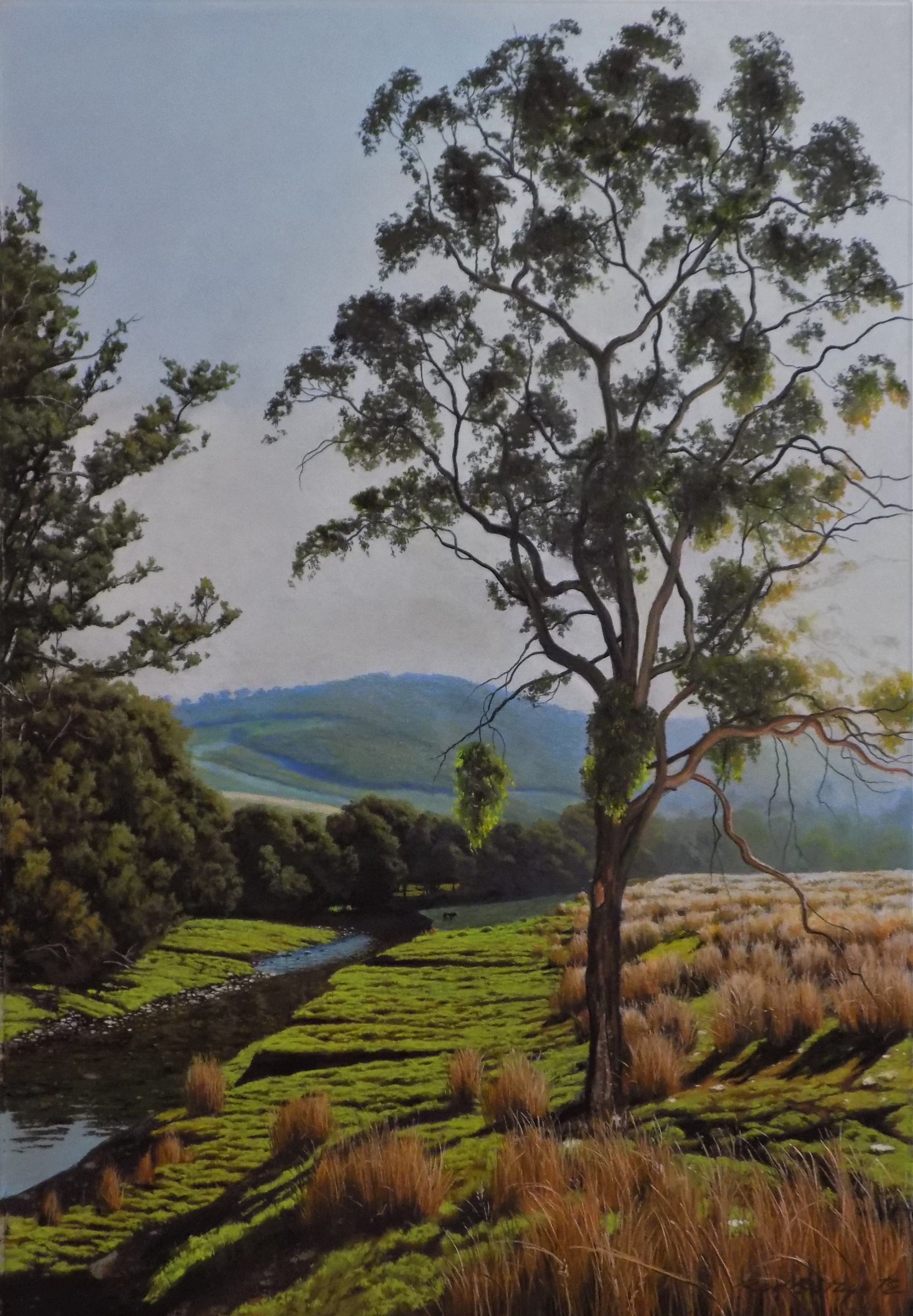 Artist Statement: A tranquil afternoon in the Upper Hunter with the last flash of sunlight filling the scene. - Rod Bathgate