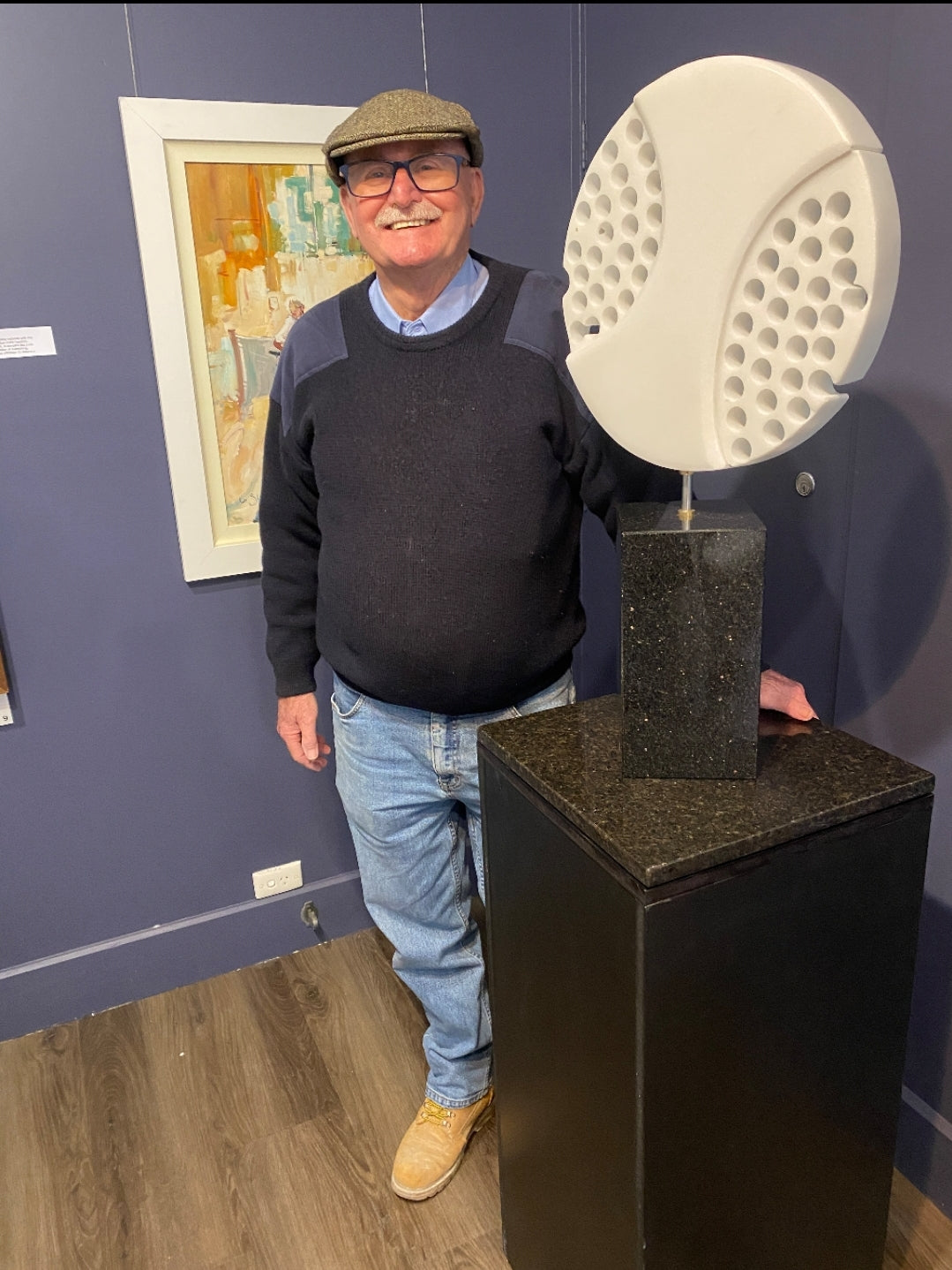 CHG Director's Statement: Formally trained, Bachelor of Fine Arts from Newcastle University, further studies in sculpture at the Palla Studio Piestrasant, Italy. Roger McFarlane's reputation overseas is where he achieved considerable notoriety- having exhibited in Paris at the Automne Salon on 3 occasions. Recently he won the 2013 Abstract sculpture prize at the Maitland Art Prize. With over a dozen sculpture prizes over the past 20 years, he has taken part in over 60 group exhibitions. His body of work comprises abstract and figurative marble sculptures, many on a domestic scale. Both Australian and imported marbles from Italy are used. Roger’s vision for Australian art is... 'Australia needs more quality public art and collectors should have sculpture representation. For too long 3D art forms have been excluded from many important collections within Australia’. It is his opinion and commitment to encourage a change. For as he says “an art collection without sculpture is like having a Greek salad without olives”.