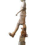 Yet like a magician compelled to reveal his tricks, Glassborow often deconstructs the process of creation. The figures are sometimes revealed in their unformed or half-formed states. For example, ‘point’ moves from an aesthetic that recalls the raw clay of the early modelling process, through a roughly finished and patinated green bronze, to the lush gold of the polished metal. The figure incorporates both naturalistic and mechanistic elements, creating a poetic juxtaposition between the material of antiquity and the imagery of the age of automaton. Find the full introduction here.