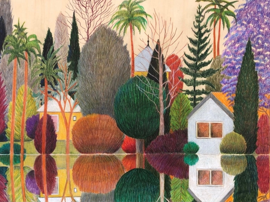 Artist Statement: "Produced during and inspired by the recent big wet season in NSW. The mirror image being a metaphor for a time of seclusion and reflection".