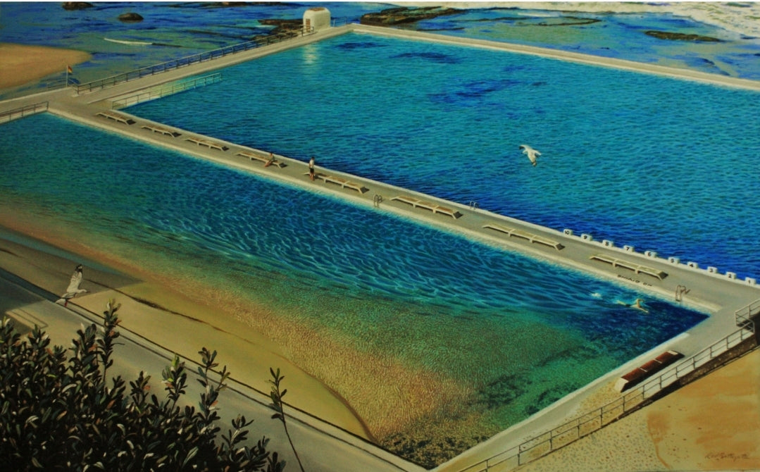 Artist Statement: 22 degrees and a light breeze on a mild winter day at Merewether Baths finds a solo swimmer doing laps on a warm winter sunny afternoon.- Rod Bathgate