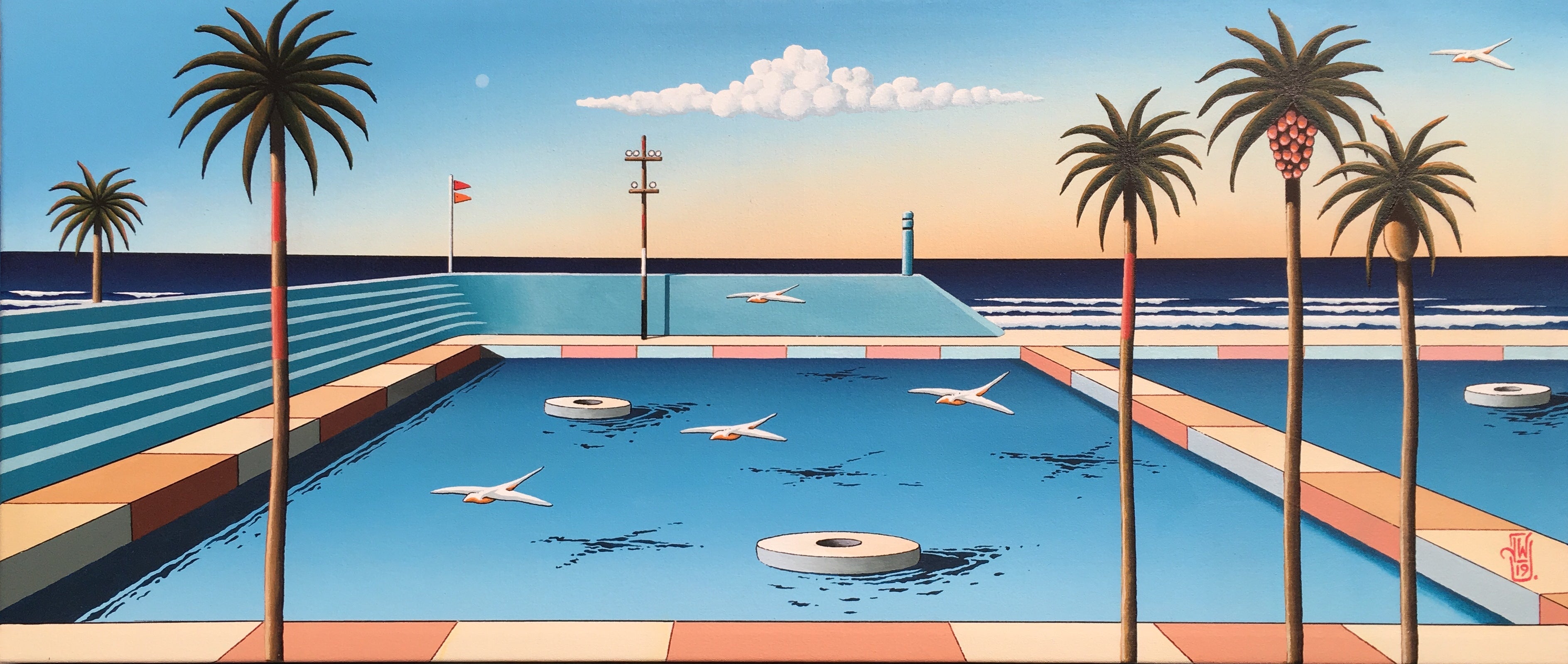 His style has been variously labelled, Surreal, Naive, Pop Art, and even Existential... but no label can really encompass or describe the subtleties of this artists unique work. He paints the Australian landscape and captures its amazing light. He celebrates nostalgic Australian popular culture. He paints the human form in this landscape and as we look at his everyman-everywoman figures, caught in a particular moment of being, we are brought back to some personal emotion, experience or memory. Such a response needs no label or critical thesis. It just is... the essence of Good Art. It provokes, it stimulates, and it celebrates. It defines something about our essence, which is beyond words.