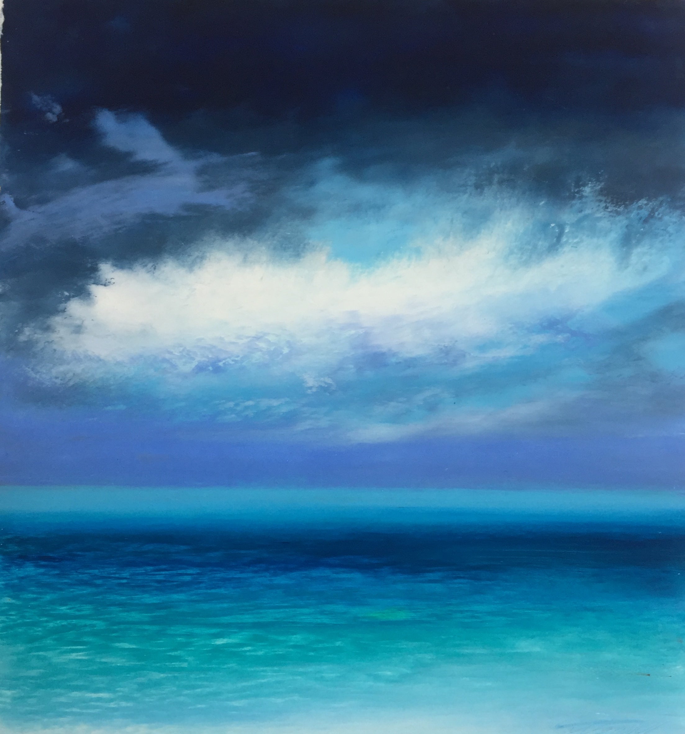 Artist Statement: Moving in a new direction away from the reds in these ocean inspired works. The sky is an ever changing source of ideas and I've been studying the subtle, as well as the dramatic contrasts the sky presents. - Susan Weaver.
