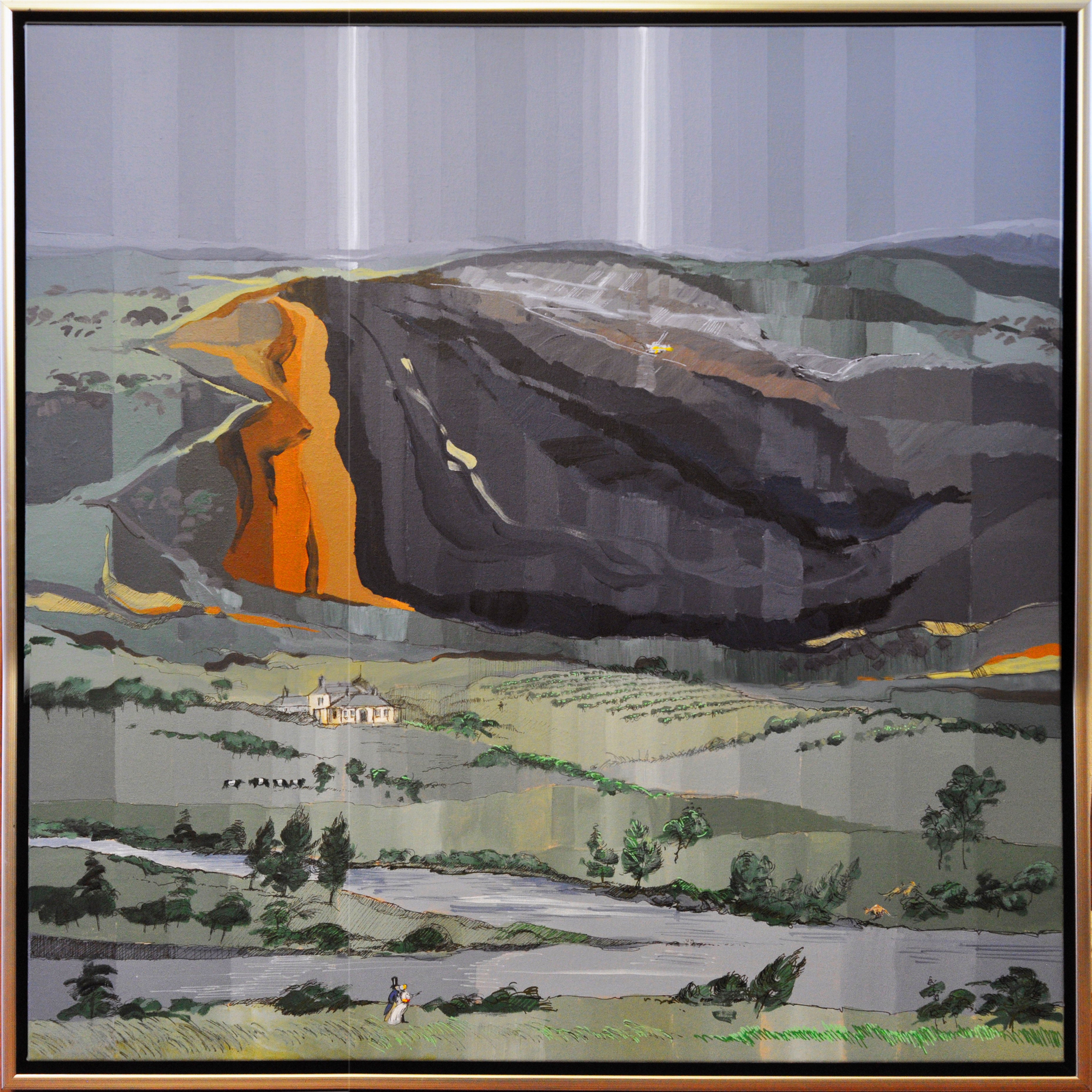 Artist Statement: The work combines two images, one based on the colonial artist Joseph Lycett's arcadian vision of early colonial Australia, the other a contemporary aerial view of one of the huge open cut mines of the Hunter Valley. Ironically, Lycett's images were used to promote the Australian Agricultural Company, which was later to profit massively from the development of coal mining in the valley - Gavin Fry