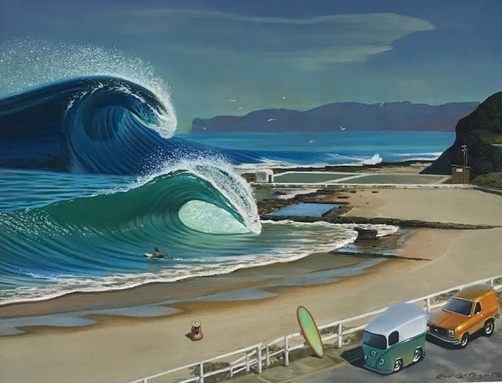 Artist Statement: Not unusual for Merewether to get slightly overhead and look, no crowds! - Rod Bathgate.