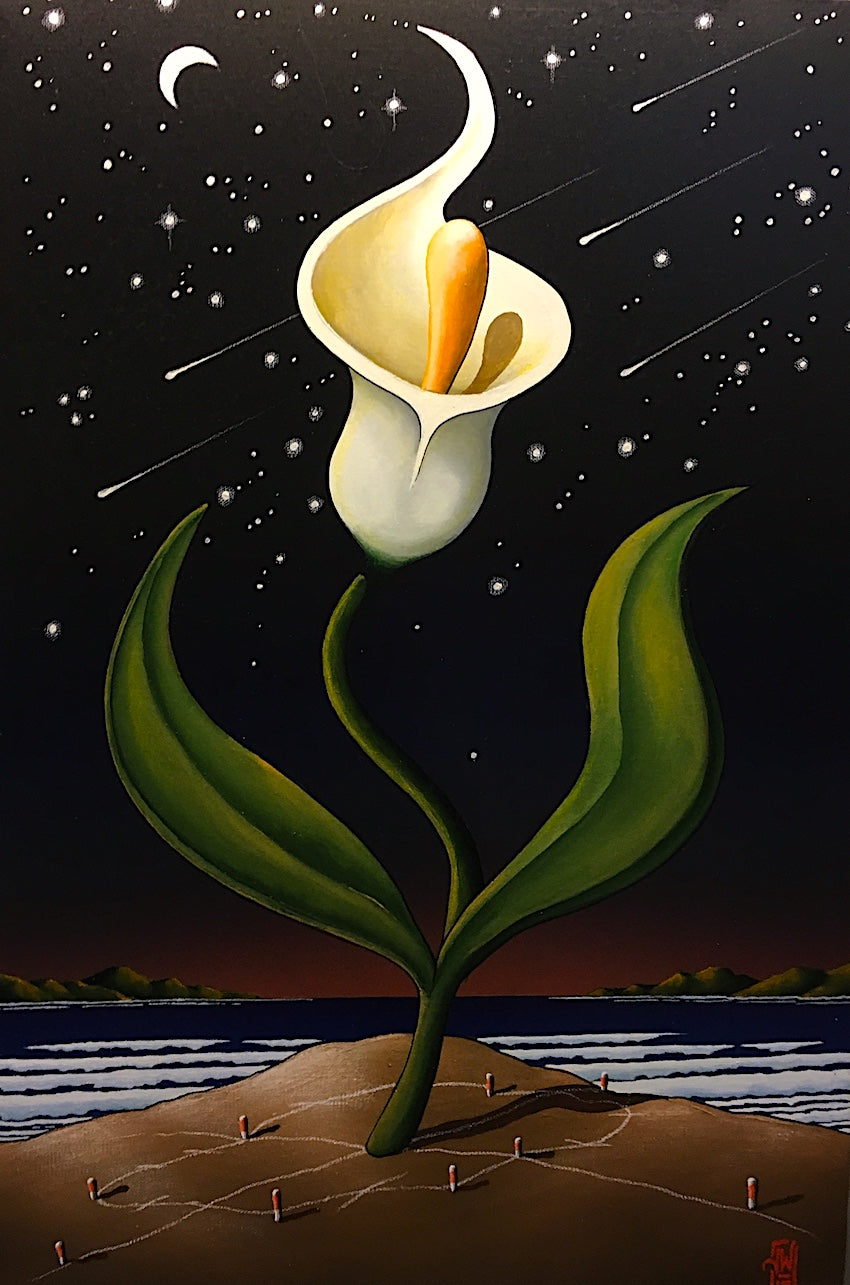 His style has been variously labelled, Surreal, Naive, Pop Art, and even Existential... but no label can really encompass or describe the subtleties of this artists unique work. He paints the Australian landscape and captures its amazing light. He celebrates nostalgic Australian popular culture. He paints the human form in this landscape and as we look at his everyman-everywoman figures, caught in a particular moment of being, we are brought back to some personal emotion, experience or memory. Such a response needs no label or critical thesis. It just is... the essence of Good Art. It provokes, it stimulates, and it celebrates. It defines something about our essence, which is beyond words.