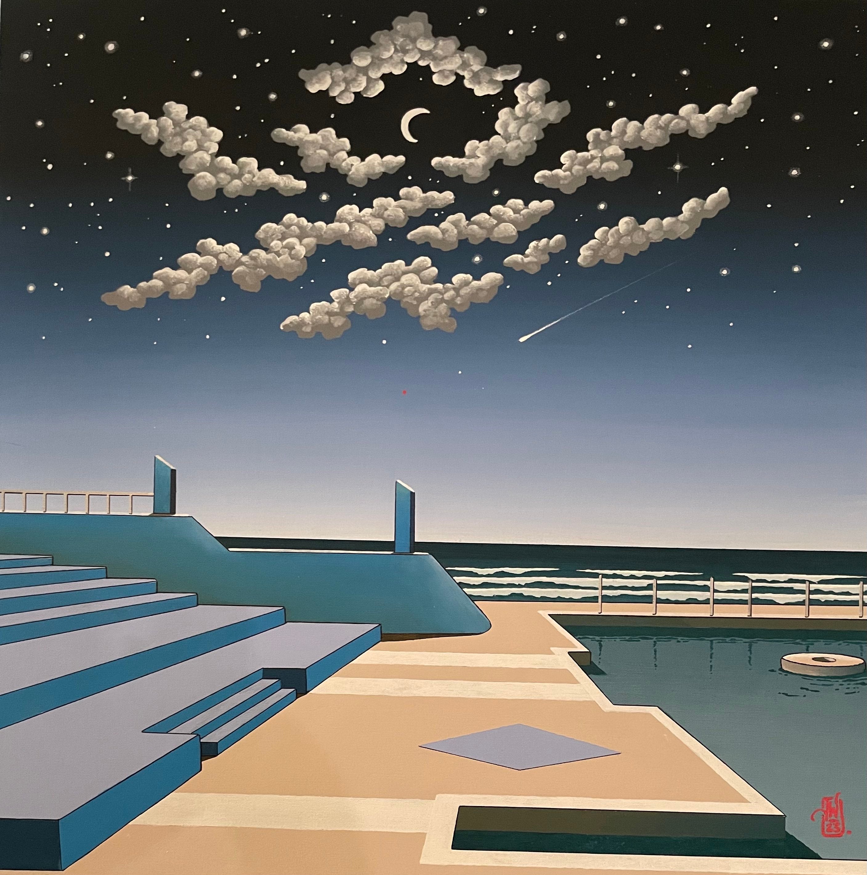 His style has been variously labelled, Surreal, Naive, Pop Art, and even Existential... but no label can really encompass or describe the subtleties of this artists unique work. He paints the Australian landscape and captures its amazing light. He celebrates nostalgic Australian popular culture. He paints the human form in this landscape and as we look at his everyman-everywoman figures, caught in a particular moment of being, we are brought back to some personal emotion, experience or memory. Such a response needs no label or critical thesis. It just is... the essence of Good Art. It provokes, it stimulates, and it celebrates. It defines something about our essence, which is beyond words.