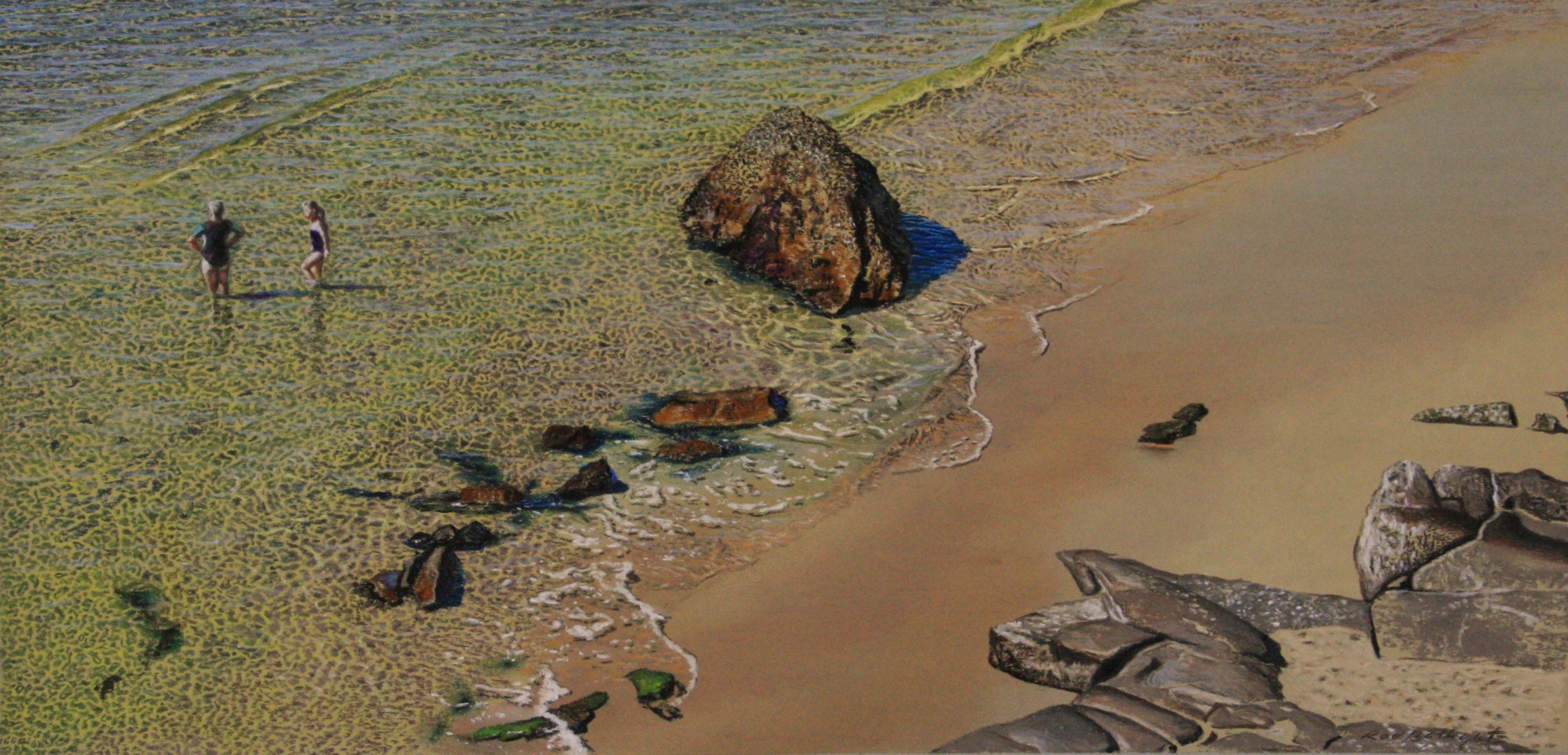 Artist Statement: Grandmother and granddaughter taking a morning dip near the rocks at Bar Beac- Rod Bathgate