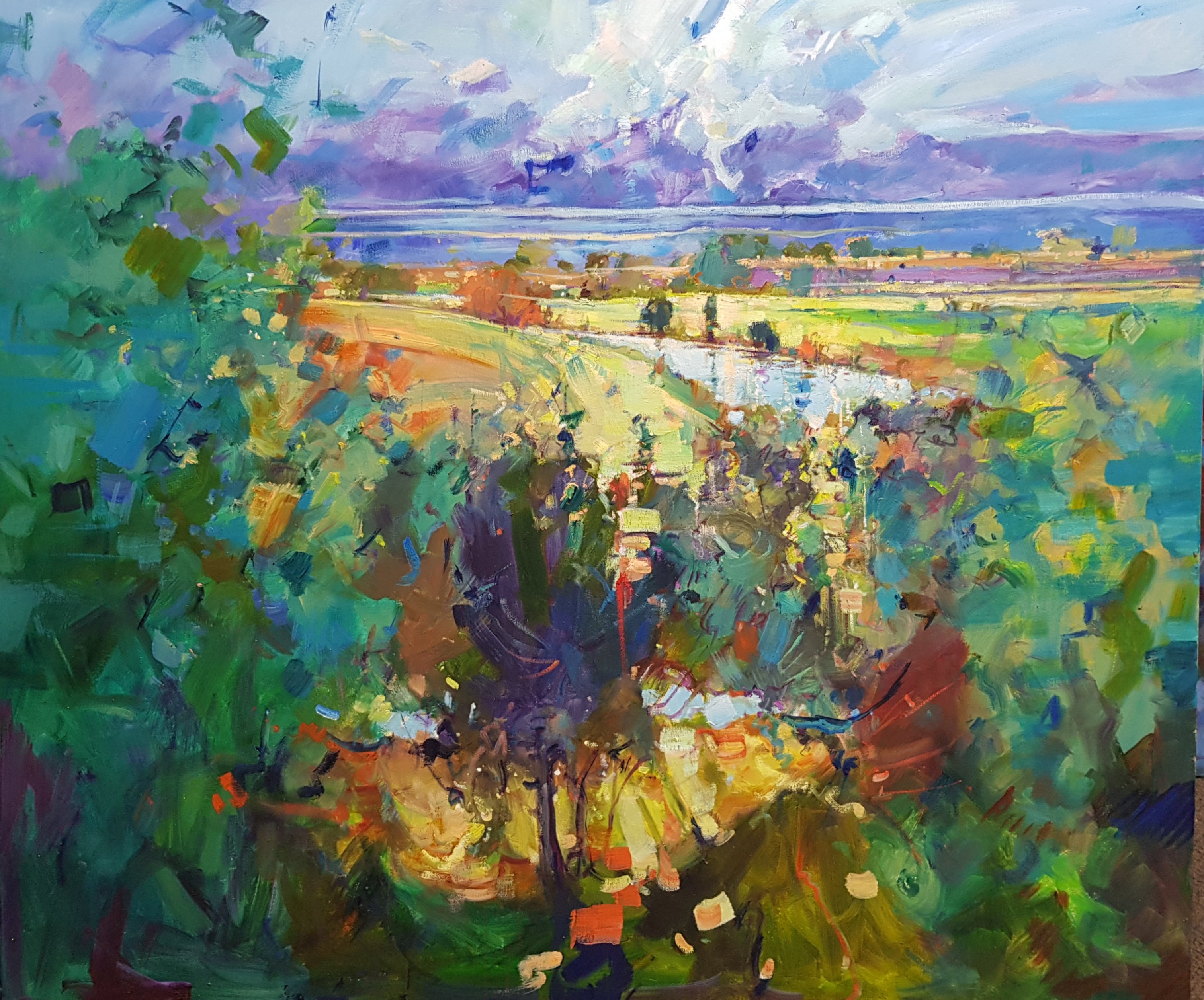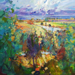 Works tend to be an impressionist style with subjects ranging from panoramic landscape to more intimate images combining the influence of man and his surroundings. Works often have a non representational feel with the key compositional element being a well structured use of colour and movement.