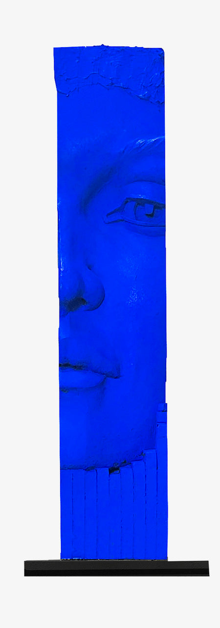 Cast in Yves Klein’s ultramarine blue, its luminous surface—sensitive to light and touch—carries the colour’s celebrated art-historical pedigree.