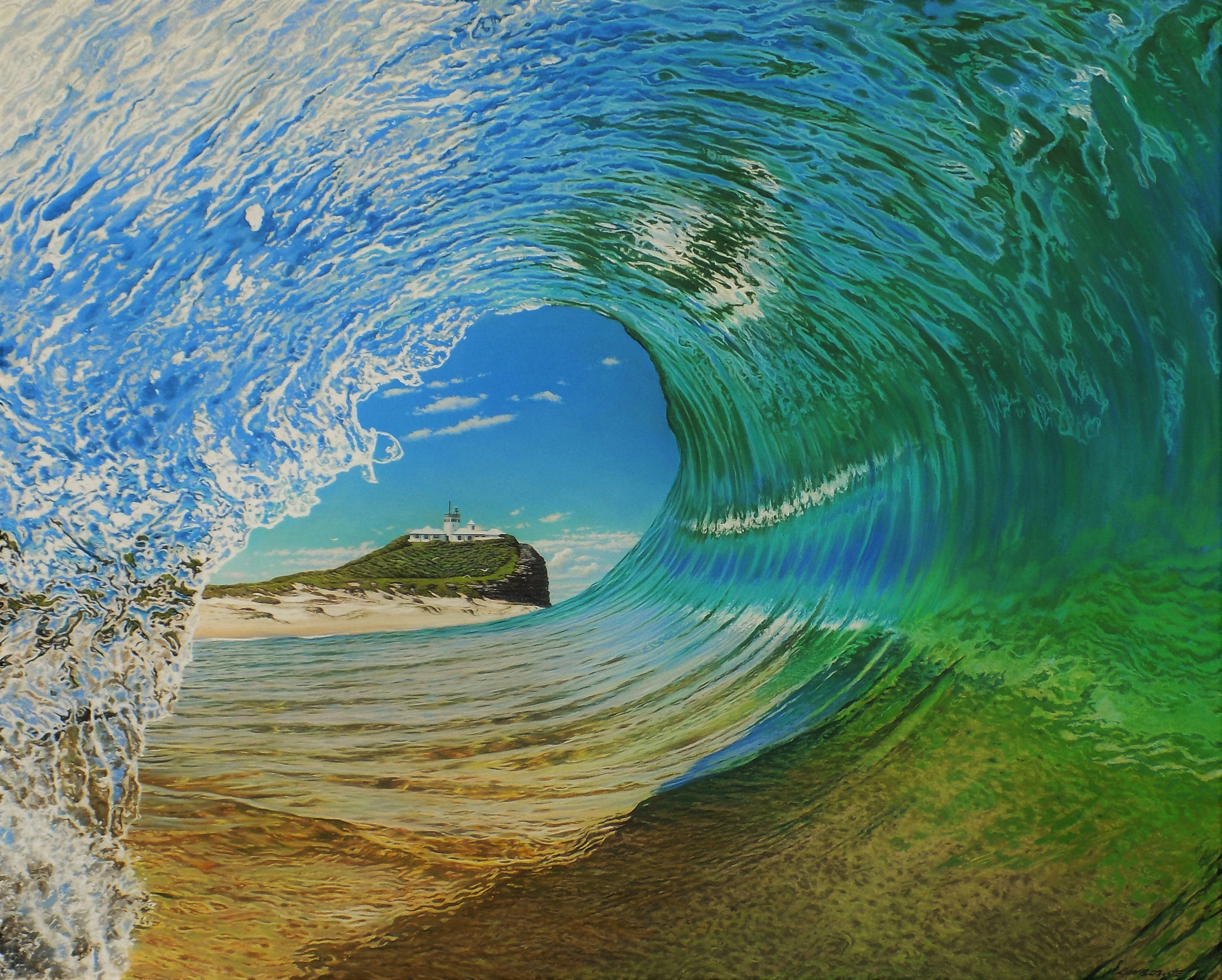 Artist Statement: A clearwater right hand wave with Nobby's signal station at centre - Rod Bathgate