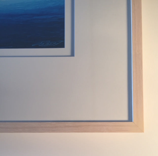 Weaver’s art is almost an optical illusion, where colours are silhouetted. An ethereal land- or seascape is generated by her layering of oil pastel. This medium is not successfully understood by most artists.