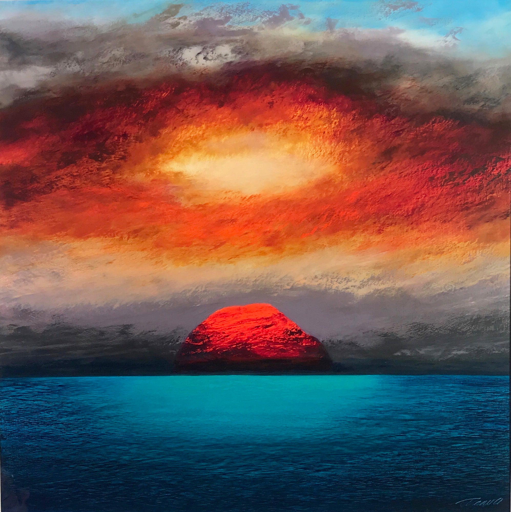 Artist Statement: Light bounces from the sea to the island and escapes to the break in the clouds suggesting that something has occurred beyond our perceptions. - Susan Weaver.