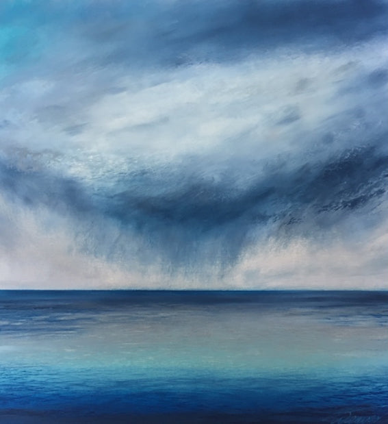 Weaver’s art is almost an optical illusion, where colours are silhouetted. An ethereal land- or seascape is generated by her layering of oil pastel. This medium is not successfully understood by most artists.
