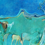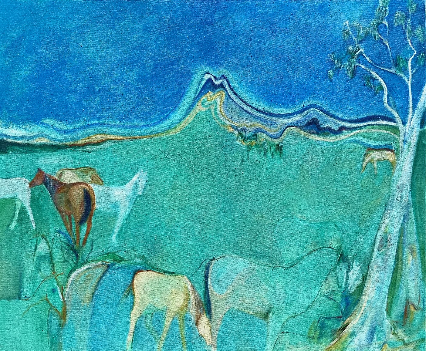 Robbie enjoys a certain freedom as a painter. He is engrossed by landscapes, and not surprisingly, they form the foundation of most of his paintings. Horses in fields grazing, grouped, and resting, provides a sense of humanity within Robbie’s paintings. It allows the viewer to identify with the painting subjects and relate them back to daily human behaviours. These subjects are at ease within rolling pastures and sweeping, distant mountain ranges.