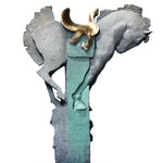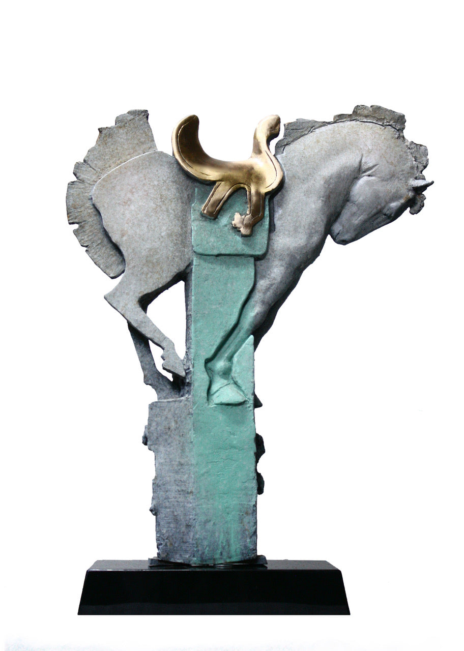 Artist Statement: is a bronze sculpture that challenges traditional representations of the horse by deconstructing its form into three distinct sections.