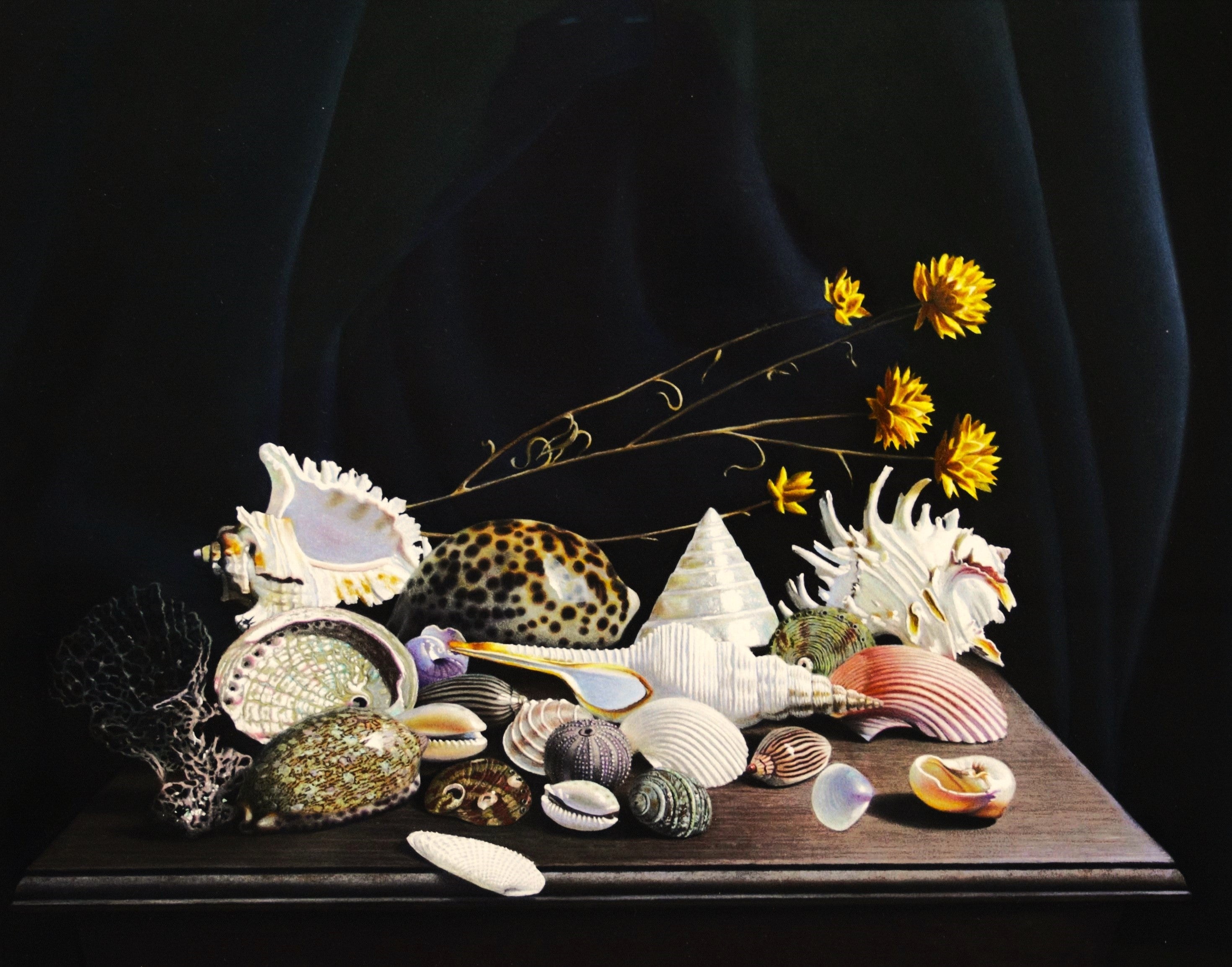 Artist Statement: A smaller version of another work in the exhibition with variations in the arrnagement of shells and other treasures.