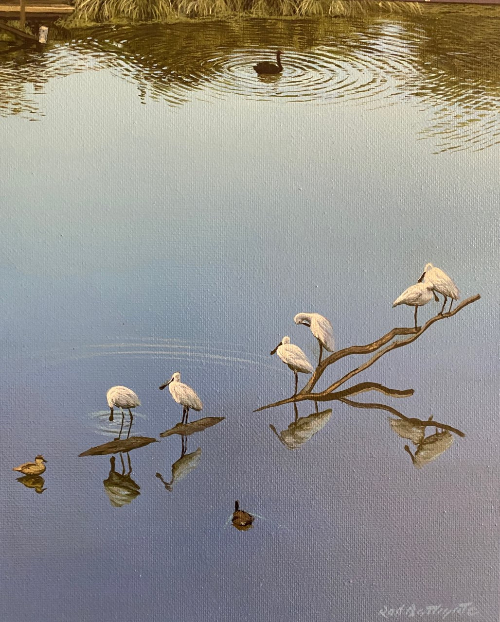 Rod is not only accomplished with pastel on paper and board, but equally so in oil painting. Photo like complicated compositions detailing, light, water effects and beachscapes with a figurative aspect are what we expect from this artist.