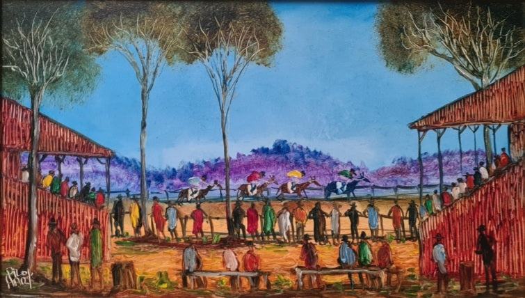 Director's Statement: Pro Hart was criticised for being a prolific painter, his son John suggesting he painted over 70,000 artworks in his lifetime. Be that as it may the market continues to absorb his art as it has done for 50 years or so. I describe the artwork that comes to the market as the inevitable tide; it ebbs and flows i.e. it is being bought and sold constantly. In my 42 years of business, Pro Hart paintings continue to please and attract buyers.