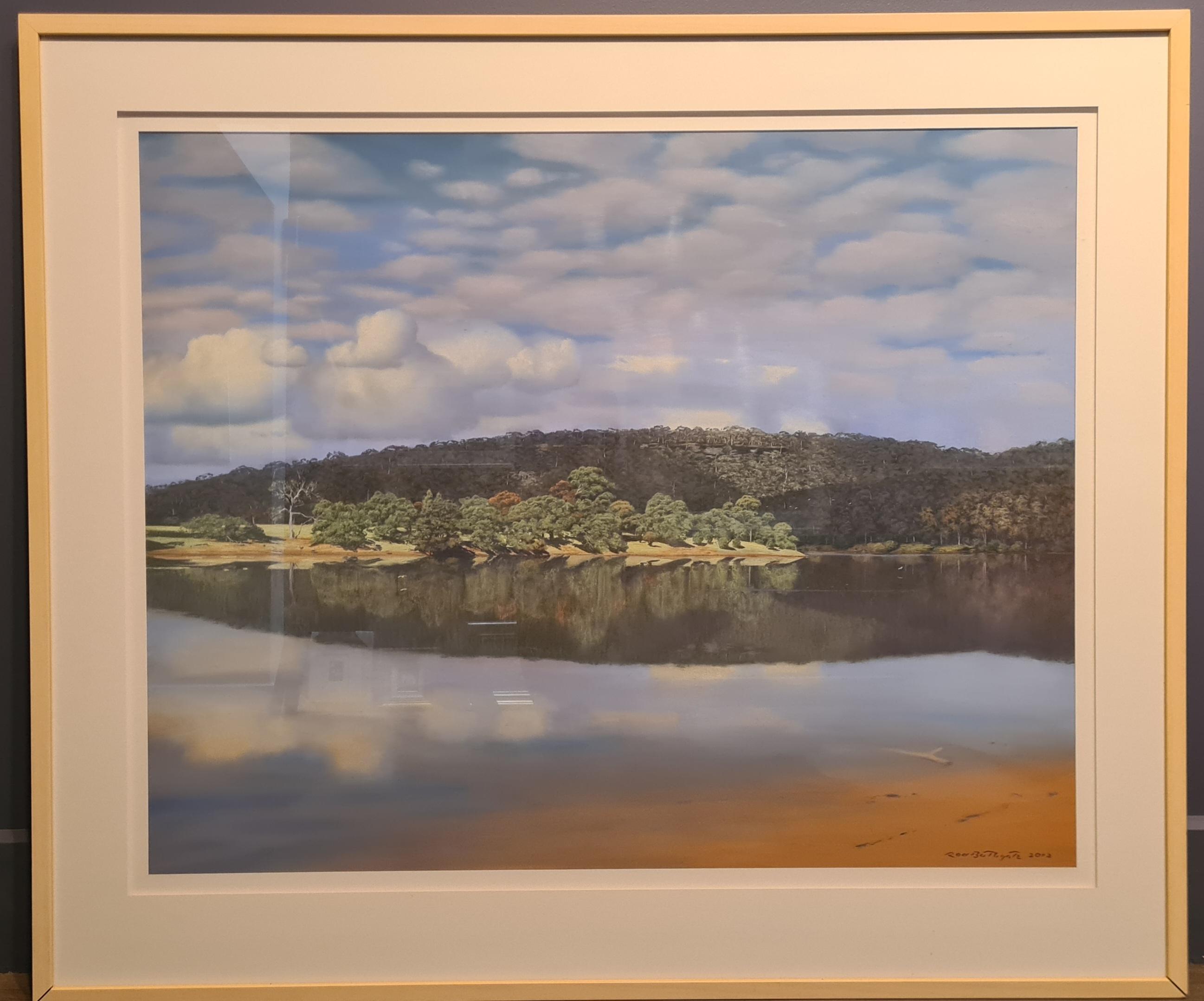 Rod is not only accomplished with pastel on paper and board, but equally so in oil painting. Photo like complicated compositions detailing, light, water effects and beachscapes with a figurative aspect are what we expect from this artist.