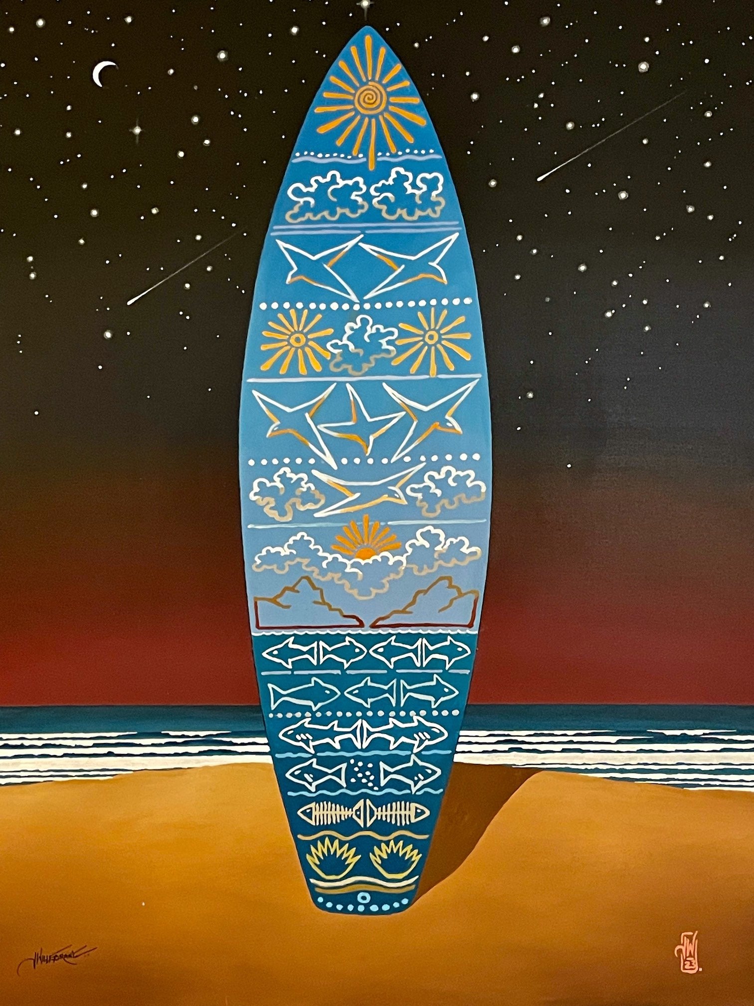 His style has been variously labelled, Surreal, Naive, Pop Art, and even Existential... but no label can really encompass or describe the subtleties of this artists unique work. He paints the Australian landscape and captures its amazing light. He celebrates nostalgic Australian popular culture. He paints the human form in this landscape and as we look at his everyman-everywoman figures, caught in a particular moment of being, we are brought back to some personal emotion, experience or memory. Such a response needs no label or critical thesis. It just is... the essence of Good Art. It provokes, it stimulates, and it celebrates. It defines something about our essence, which is beyond words.