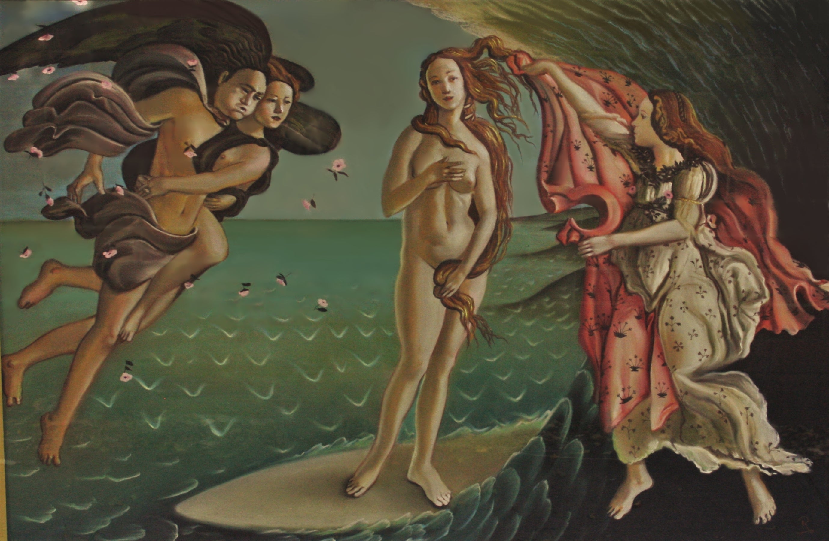 Artist Statement: A tongue in cheek pastel I started in 2012, of Venus after Botticelli. This piece is in a heavy dark frame under glass with matt in the tradition of copying the old masters as an exercise - Rod Bathgate