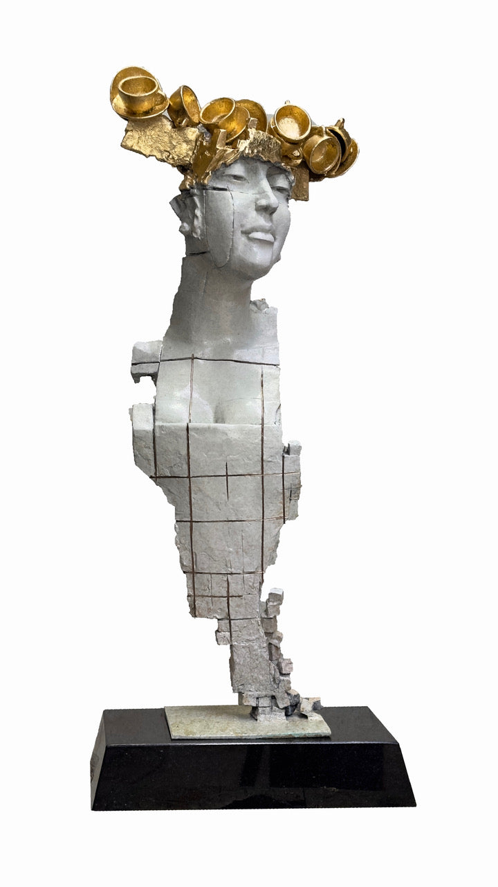 Artist Statement: "Tea Bird is a bronze sculpture that blends elegance and whimsy,
