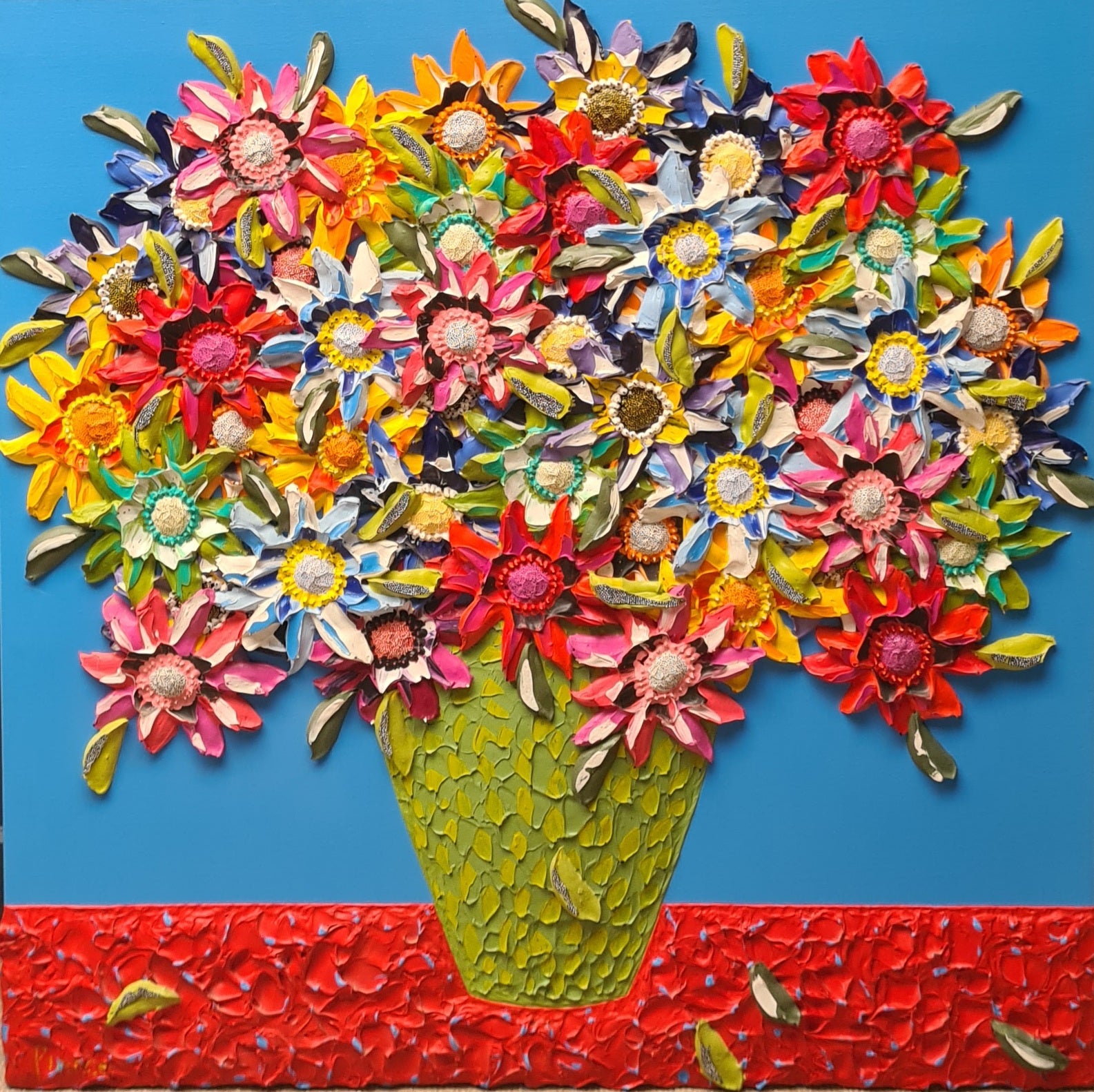 Her work initially with a design and decorative orientation harnesses these elements whilst exploring aspects of the natural and urban landscape. The interpretation of the human face and the reading of the landscape, effects of cyclical, emotional and climatic changes to ourselves and others responses to these are often drawn upon.The unpredictability of Rebecca’s subject, frequently rendered to create a third dimension, can often simultaneously create tension laced with elements of playfulness.
