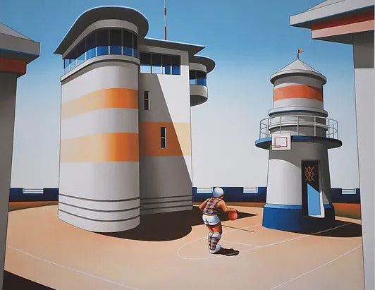 His style has been variously labelled, Surreal, Naive, Pop Art, and even Existential... but no label can really encompass or describe the subtleties of this artists unique work. He paints the Australian landscape and captures its amazing light. He celebrates nostalgic Australian popular culture. He paints the human form in this landscape and as we look at his everyman-everywoman figures, caught in a particular moment of being, we are brought back to some personal emotion, experience or memory. Such a response needs no label or critical thesis. It just is... the essence of Good Art. It provokes, it stimulates, and it celebrates. It defines something about our essence, which is beyond words.