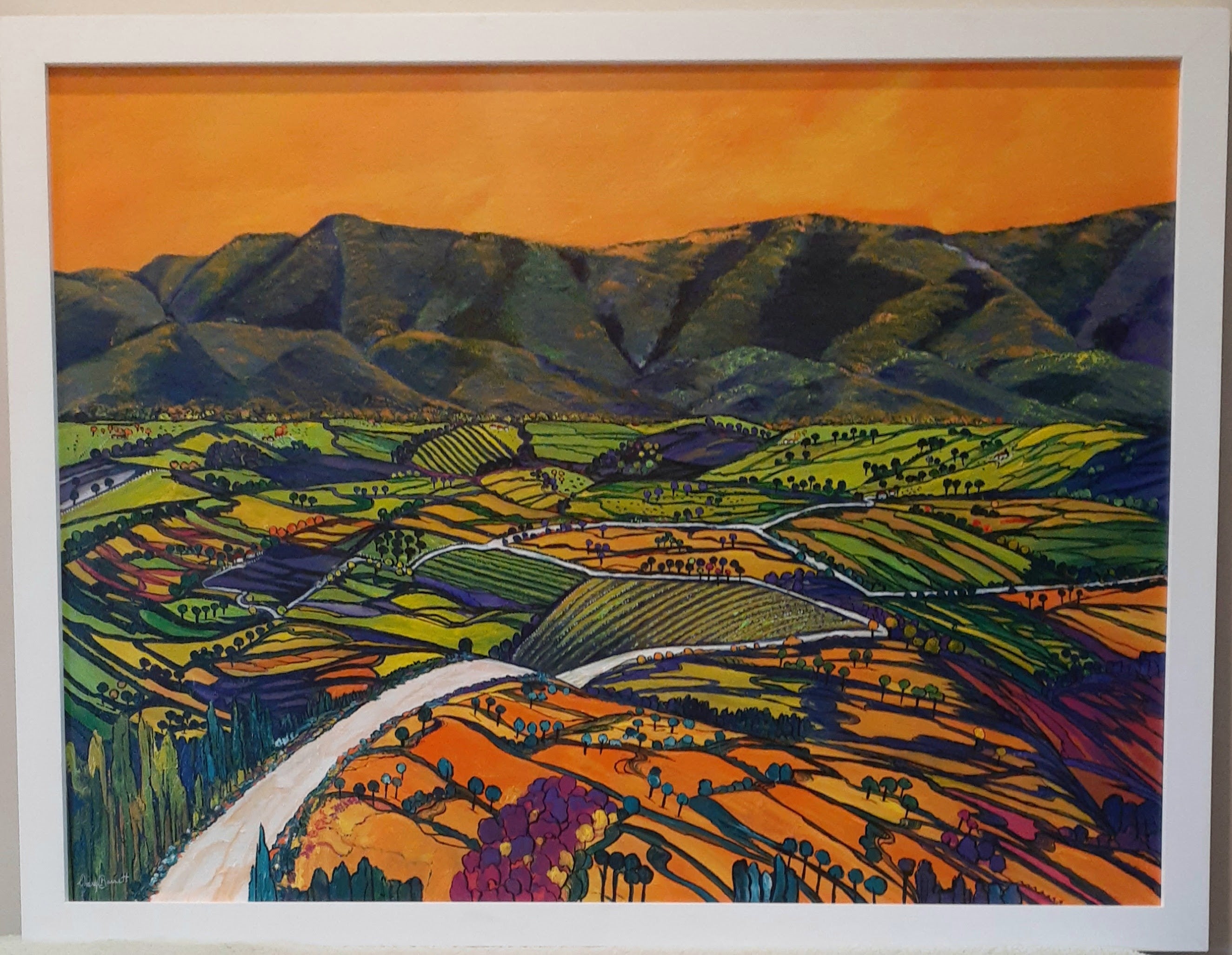 Artist Statement: Inspired by the powerful Broken Back Range, Vineyards,Properties and winding roads that take us on a journey through our beautiful Hunter Valley. - Cheryl