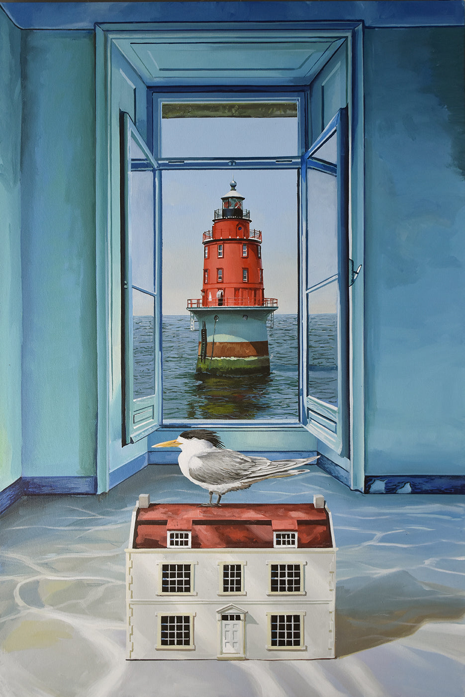 Artist statement: The dichotomy of our identities between home and work. Being two different aspects On ones self for different environments. Typified by the Turn sitting on “Home” while Looking out towards “work” around the lighthouse.
