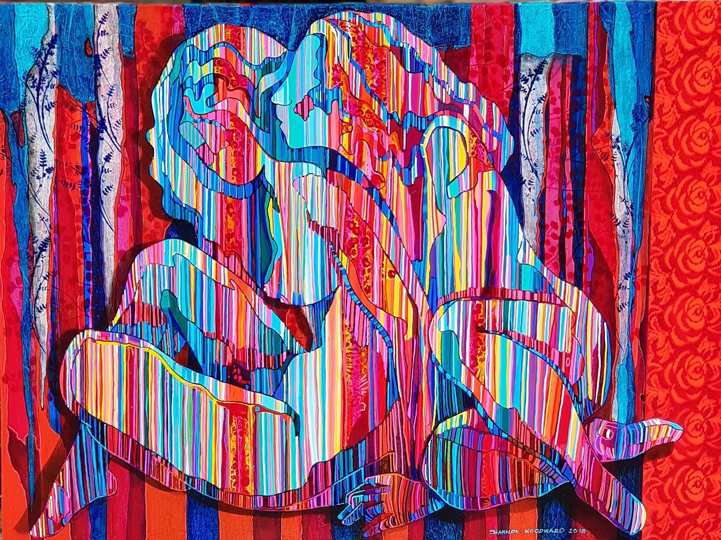 Director's Statement: This artwork is a new development for this emerging cubist figurative artist, who hasn’t shown with the Cooks Hill Galleries since 2006. Her style has become more explosive, and the cubist elements have become more stylised with the figure being offset by an expressionist backdrop. It appears quite 3 dimensional with a controlled and considered balance between foreground and landscape. This is an exciting direction for the artist. We would hope her art develops more in this direction.