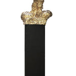 Yet like a magician compelled to reveal his tricks, Glassborow often deconstructs the process of creation. The figures are sometimes revealed in their unformed or half-formed states. For example, ‘point’ moves from an aesthetic that recalls the raw clay of the early modelling process, through a roughly finished and patinated green bronze, to the lush gold of the polished metal. The figure incorporates both naturalistic and mechanistic elements, creating a poetic juxtaposition between the material of antiquity and the imagery of the age of automaton. Find the full introduction here.