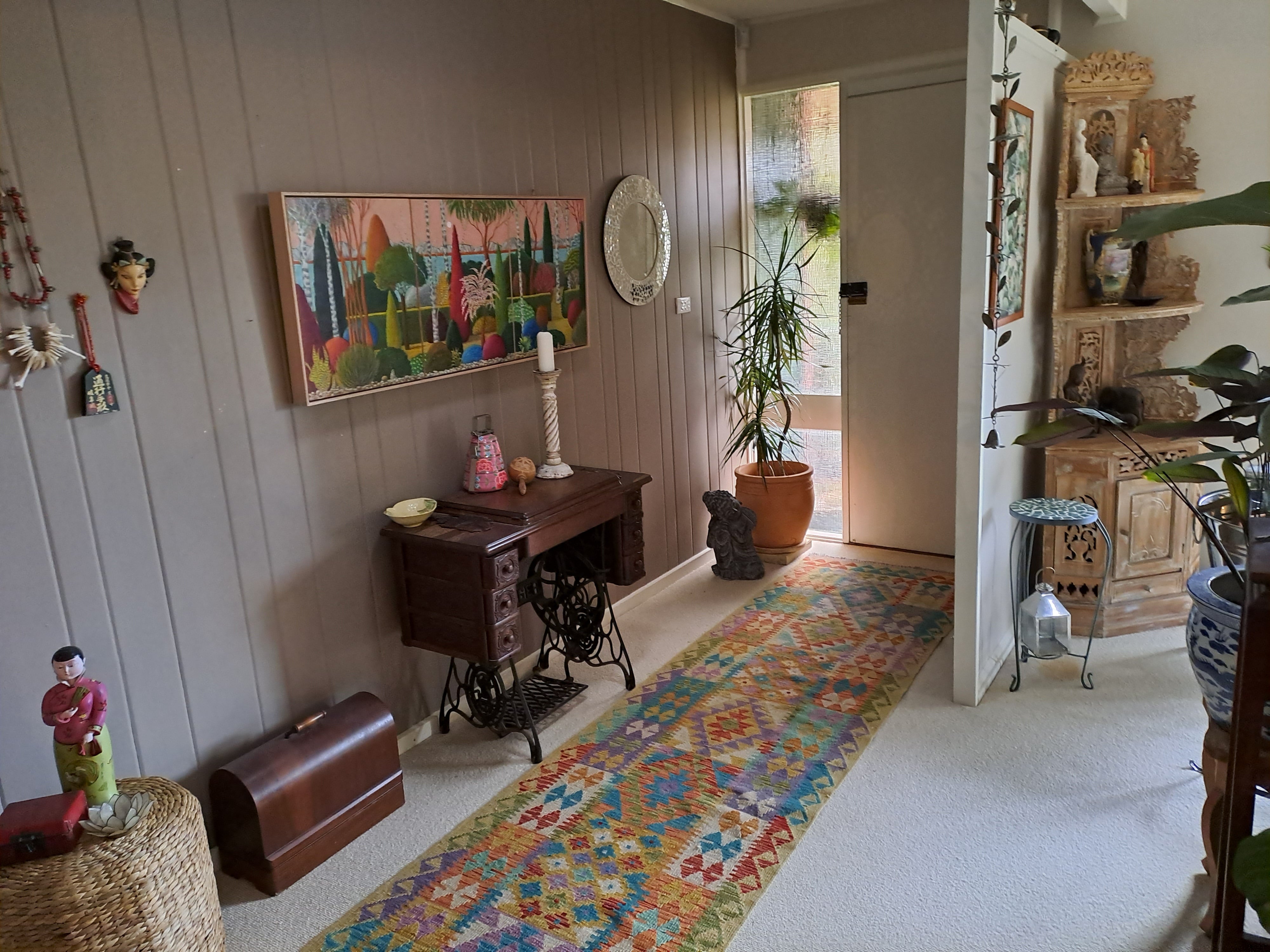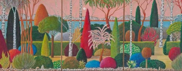 It has been a period of deep reflection and for this I am so grateful. The painting 'Silver Lining' is aptly named as it is symbolic of the great side of being in solitude - a mass production of work that otherwise would not have come to be. I breathe in the fragrant air up here and that alone is inspiration but on top of that there are endless vast and luxurious gardens full of colour and form to wander through. I feel this was meant to be a sign to pause from my other life of Argentine tango and socialising and concentrate fully on my art. I start with a vision in my mind’s eye then do rough sketches but never anything concrete as I love to 'doodle' and allow the painting to develop by itself. I feel like a medium just recording this event. I generally work with memories of childhood, mixed with the contrast of geometric shapes of man-made objects and houses and the soft forms of trees and shrubs. I paint from dark to light adding texture with thin glazes, and work in oils on canvas, pencil on wood or linocut printmaking. My huge garden has been a refuge in these troubling times and I have been doing more close-up work of the flowers I find, they are so intricate and delightful and never cease to amaze me. I absorb the essence of life and recreate and interpret this in my studio, creating a sort of utopia in which to ramble".