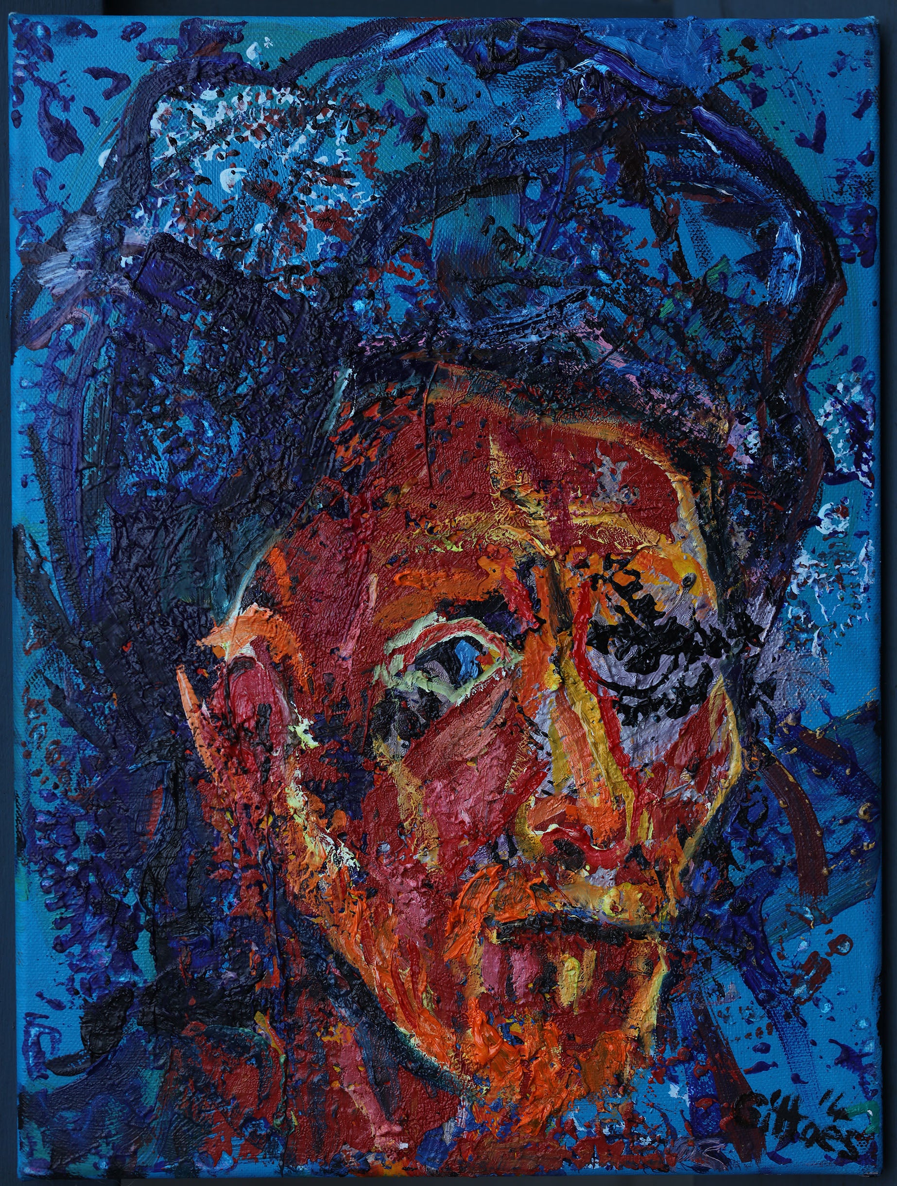 Artist Statement: This painting is 2014 and was painted from life at the Yellow House in Jalalabad Afghanistan. Ralph had a show of them and sold them all. This one seems to have hidden itself and survived. One day I found a man who was the double of Vincent and invited him back to the Yellow House. It was amazing that he turned out to be a painter. Like Vincent reborn in Afghanistan. We go painting landscapes together.