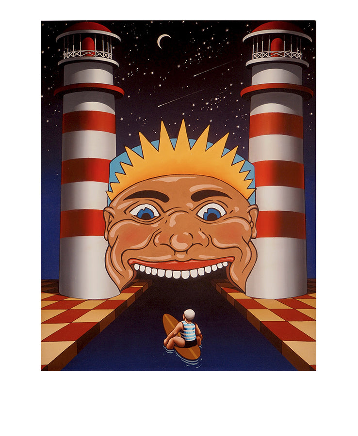 Artist Statement: “As for all young boys who grew up in the 50’s and 60’s Luna Park was a favourite destination. The iconic Face is well etched into the memory of those times and as many have noted , there is the unnerving dichotomy around the smiling clown face of the entrance; at once welcoming as well somehow foreboding. It became a kind of rite of passage for the young surfer boys as we were then.”
