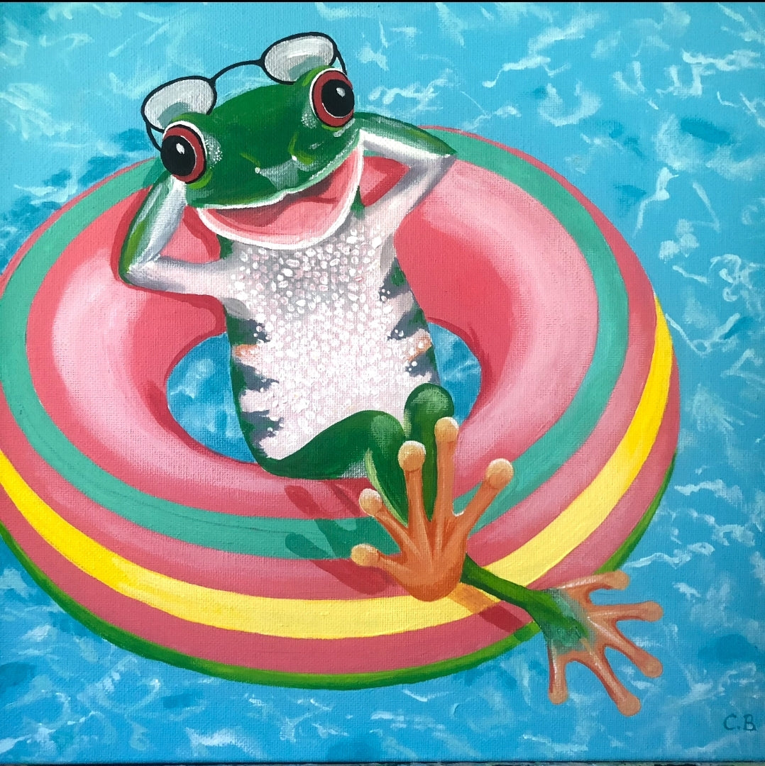 Artist Statement: This gleeful little frog is making himself at home in the pool while no one’s looking. - Catherine Banney