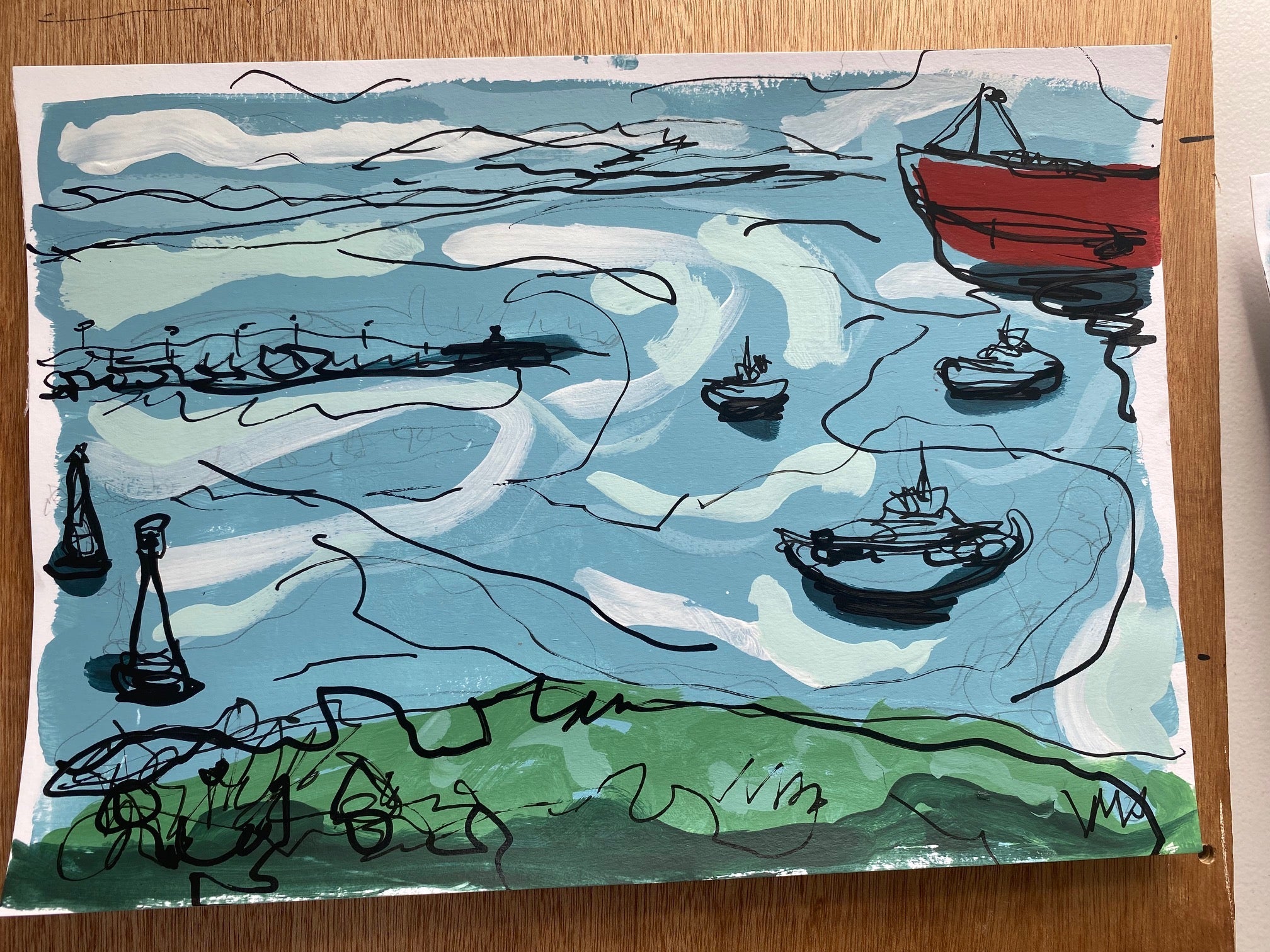 Artist Statement: The elemental force of wind, ocean, sky as tugs guide a huge tanker into Newcastle Port.