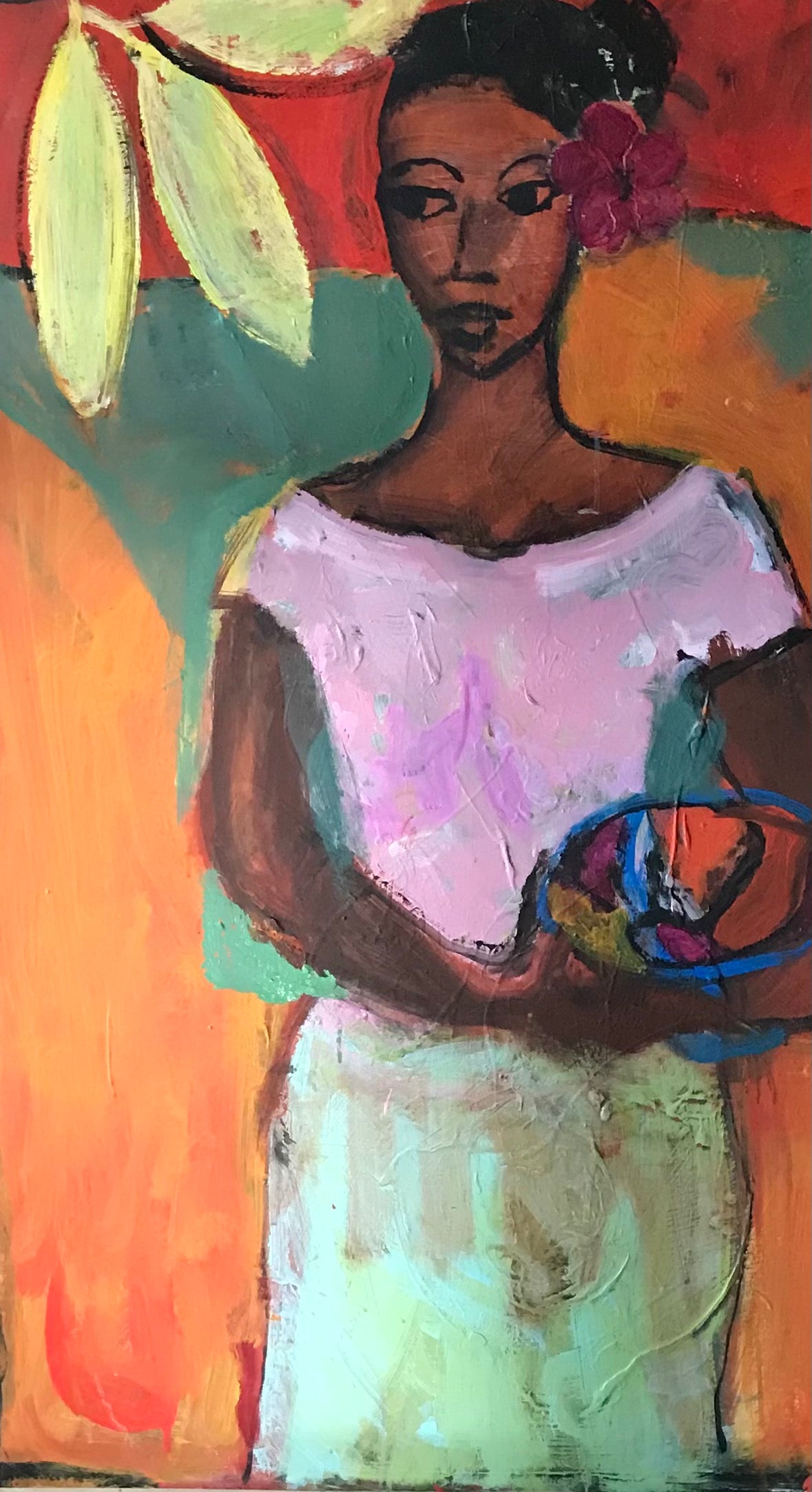 Artist Statement: "Set against a languid tropical background, the islander girl