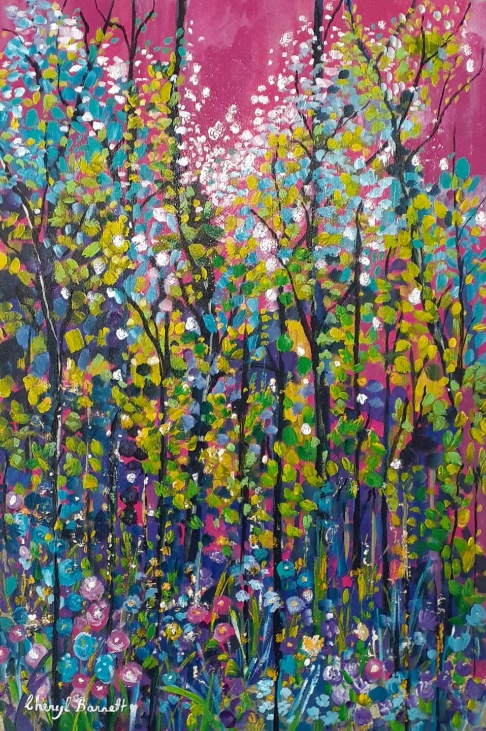 Artist Statement: Again represents my walks through bushland at sunset, very inspiring as it certainly makes my day. Cheryl
